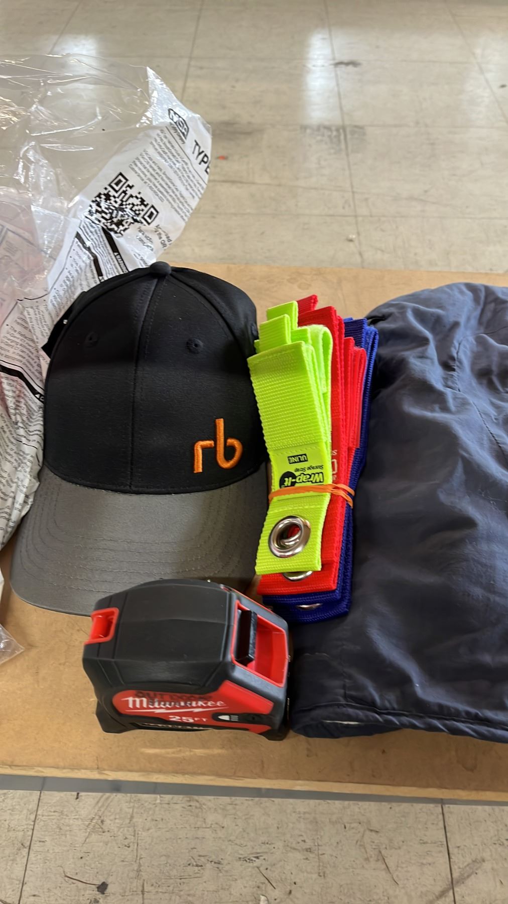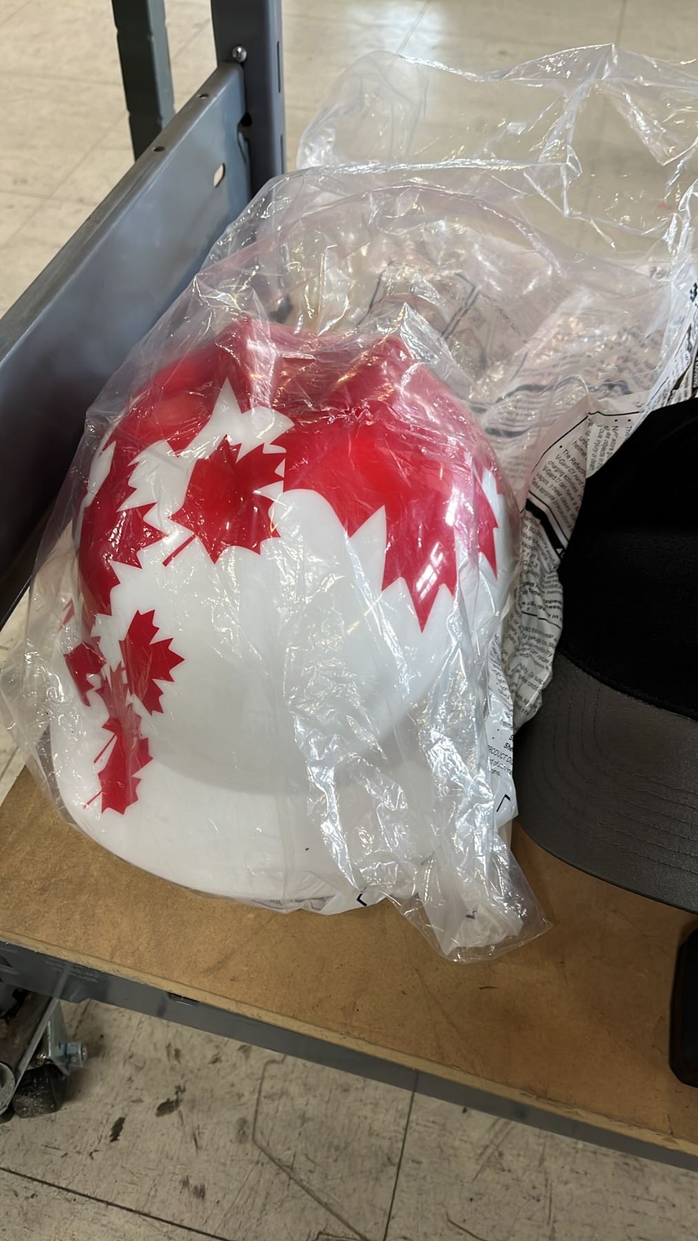 MAPLE LEAF DESIGN HARD HAT, WINTER LINER, BALL CAP, MILWAUKEE TAPE MEASURE & ULINE STORAGE STRAPS