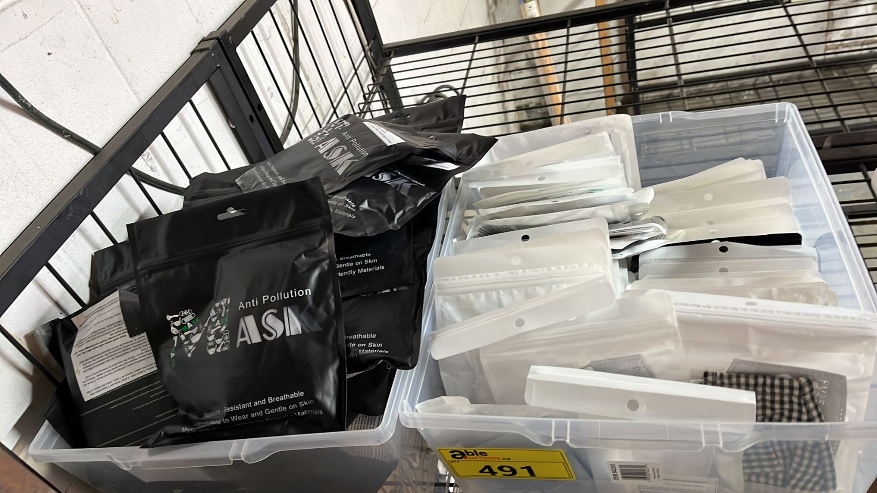 Lot 491 2 BINS OF ASSORTED FACE MASKS