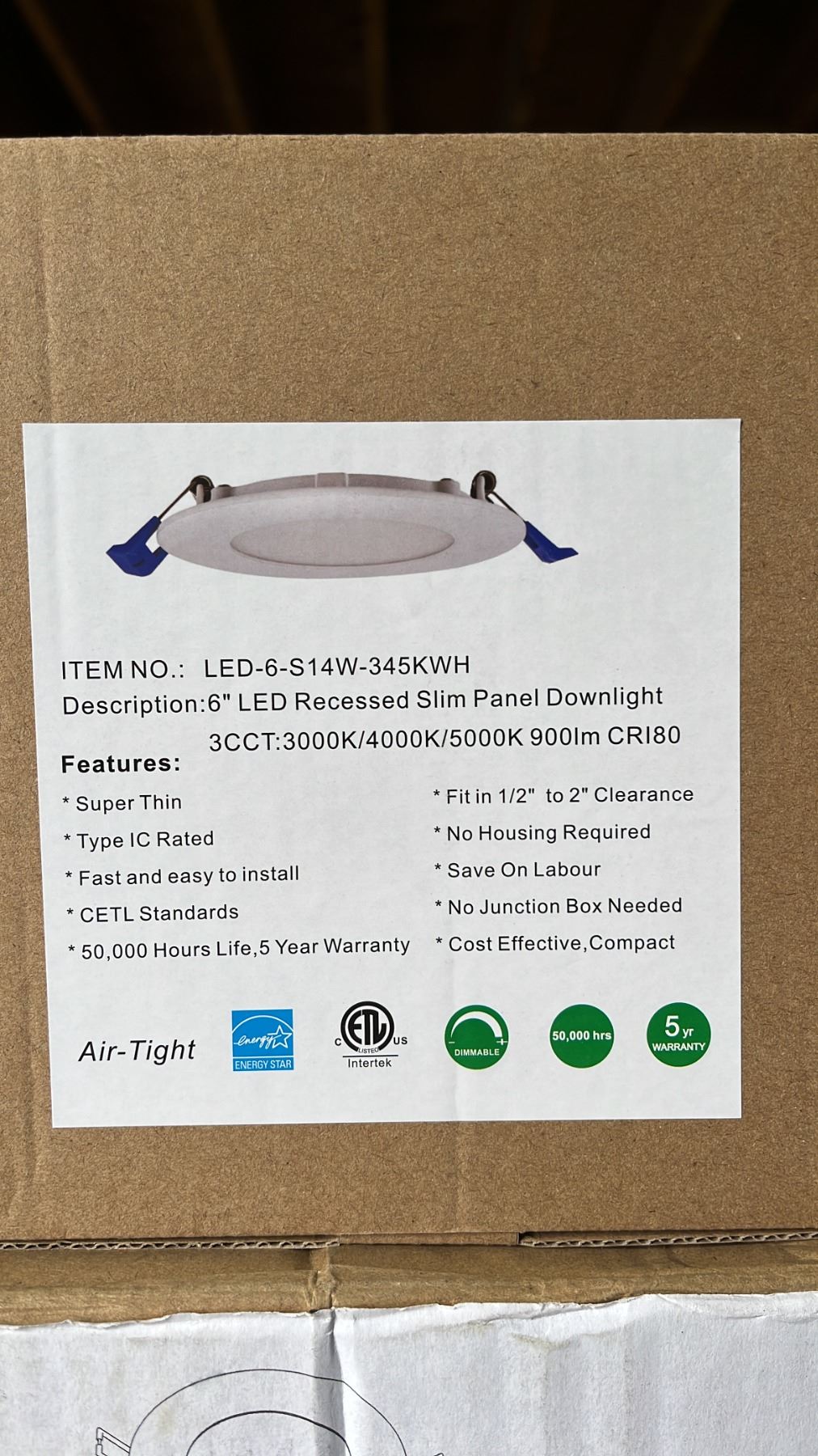 CASE OF YIGEDA 6" LED RECESSED SLIM PANEL DOWNLIGHTS