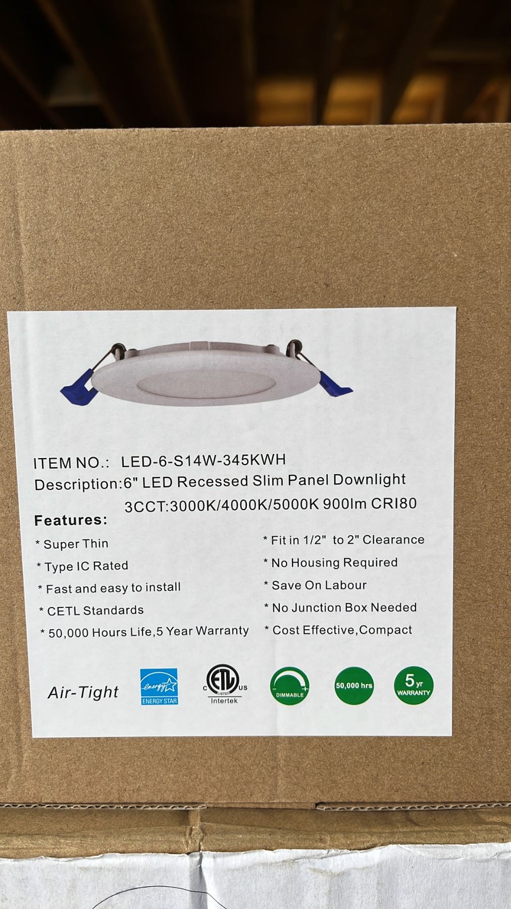 CASE OF YIGEDA 6" LED RECESSED SLIM PANEL DOWNLIGHTS
