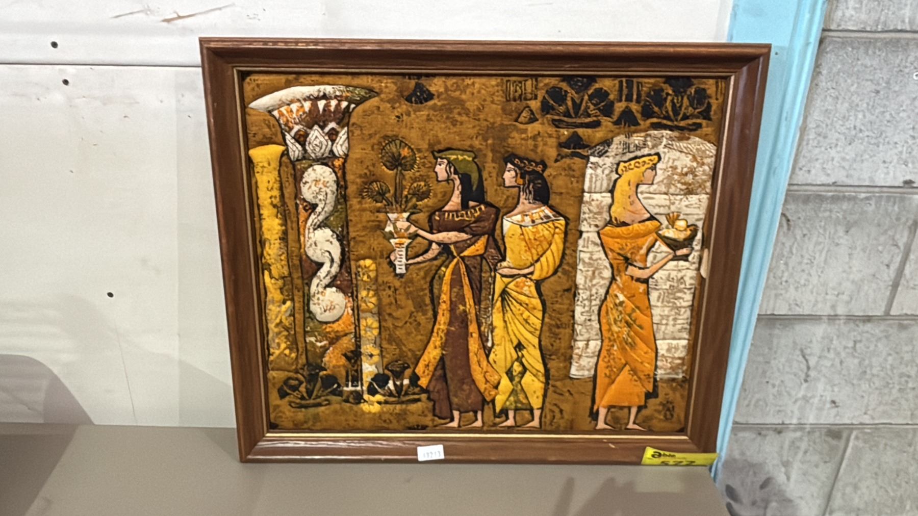 FRAMED VINTAGE WALL TAPESTRY 26" X 22"