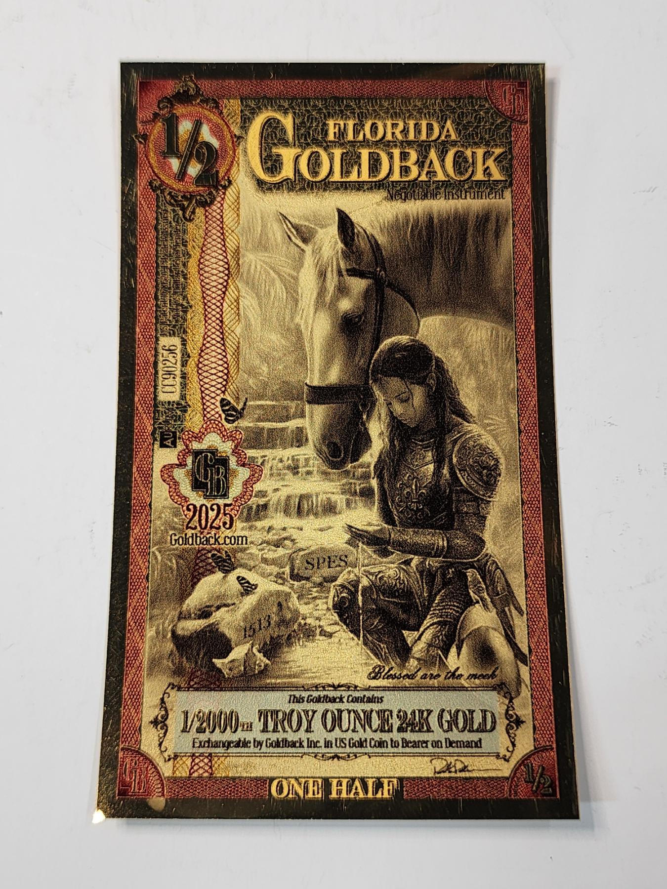 2025 1/2 Florida 1/2000 Troy Ounce 24K Gold Goldback Note