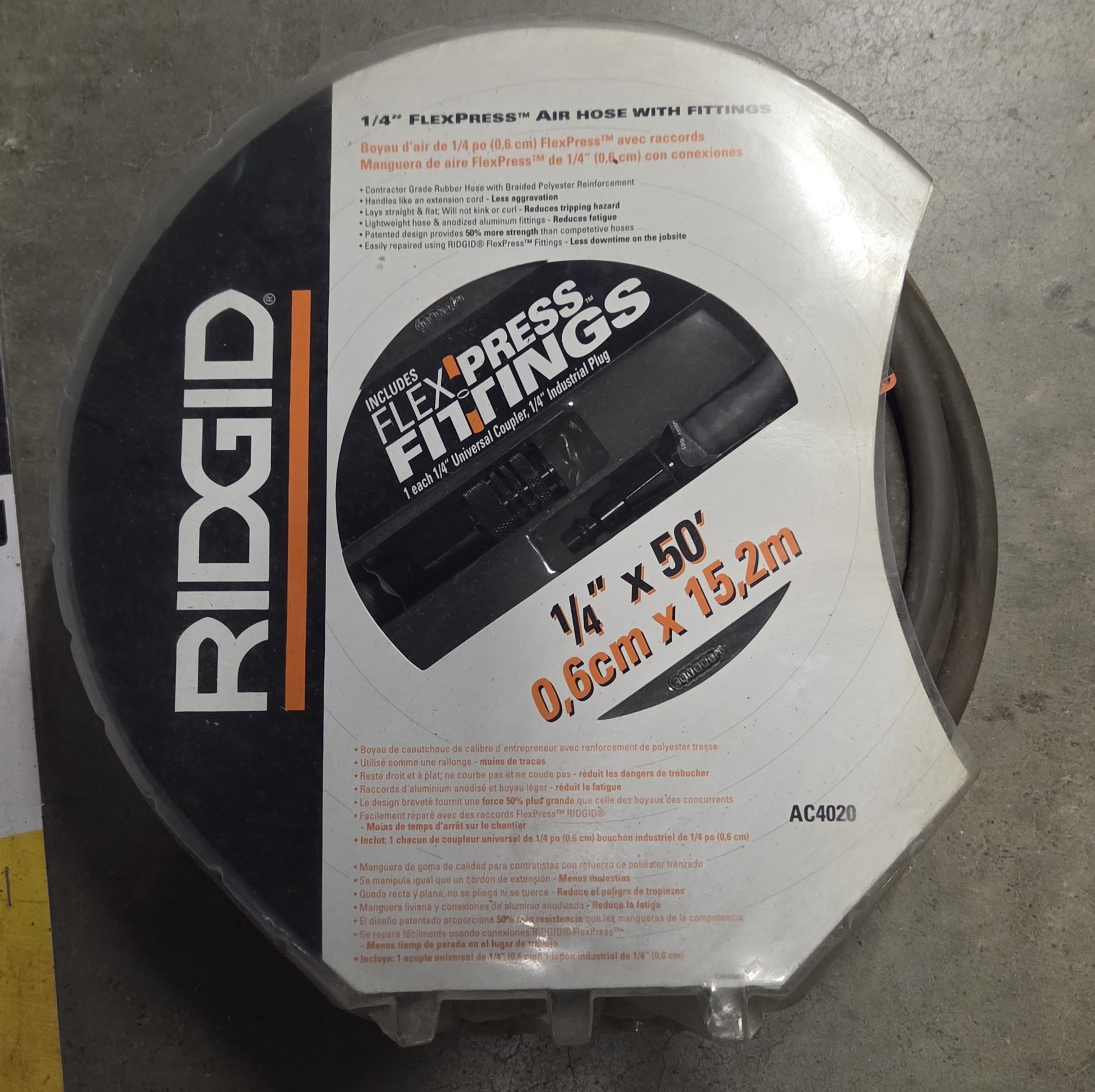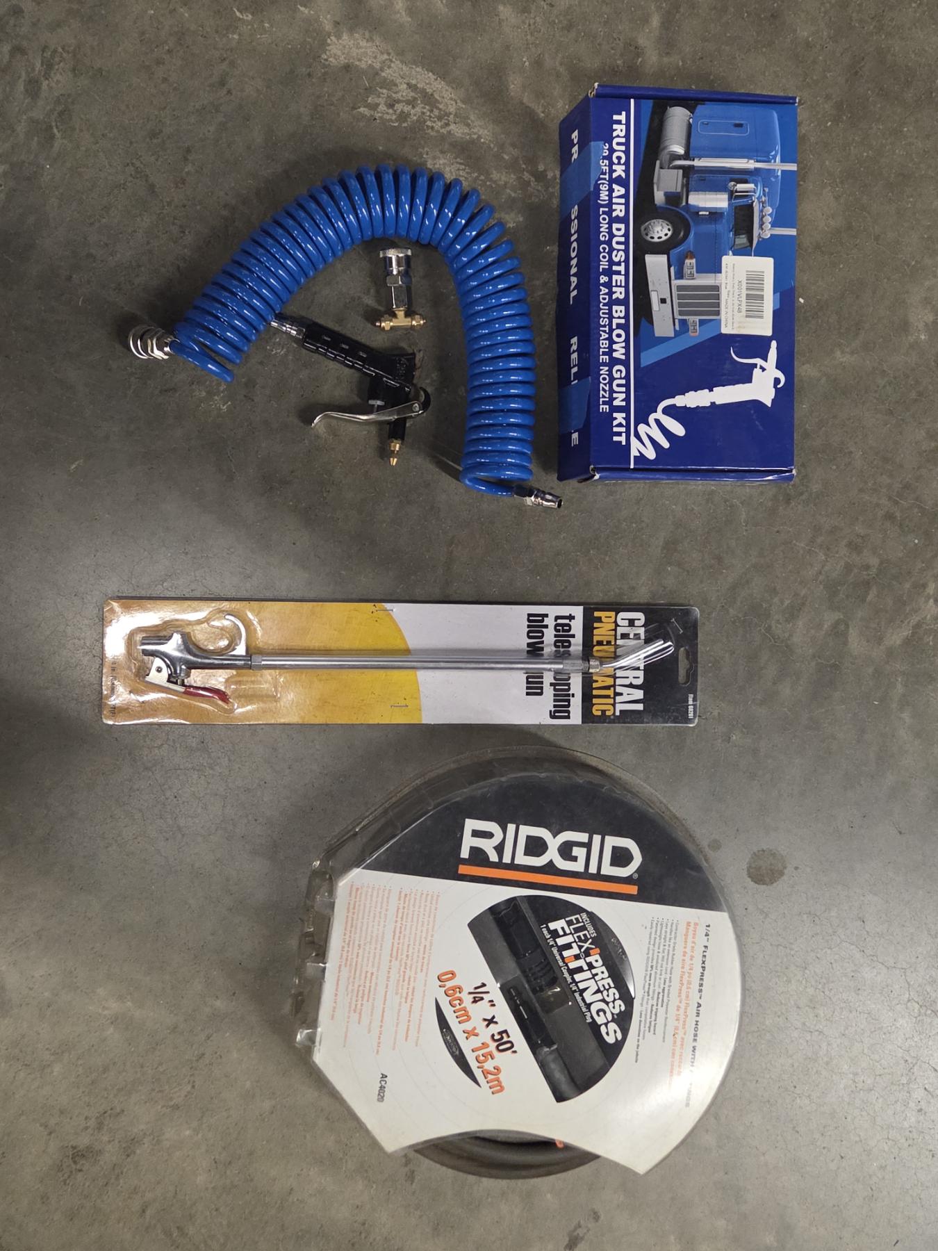 Lot 418 All Brand New- Ridgid 1/4 x50ft Air Hose With Fittings, & Two Blow Guns