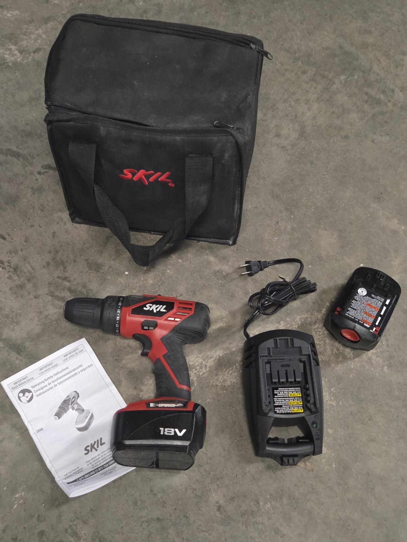Like New- Skil 18V Cordless Drill, Battery, Charger And Bag