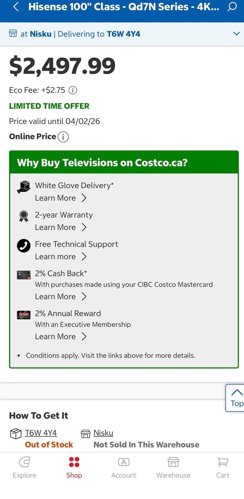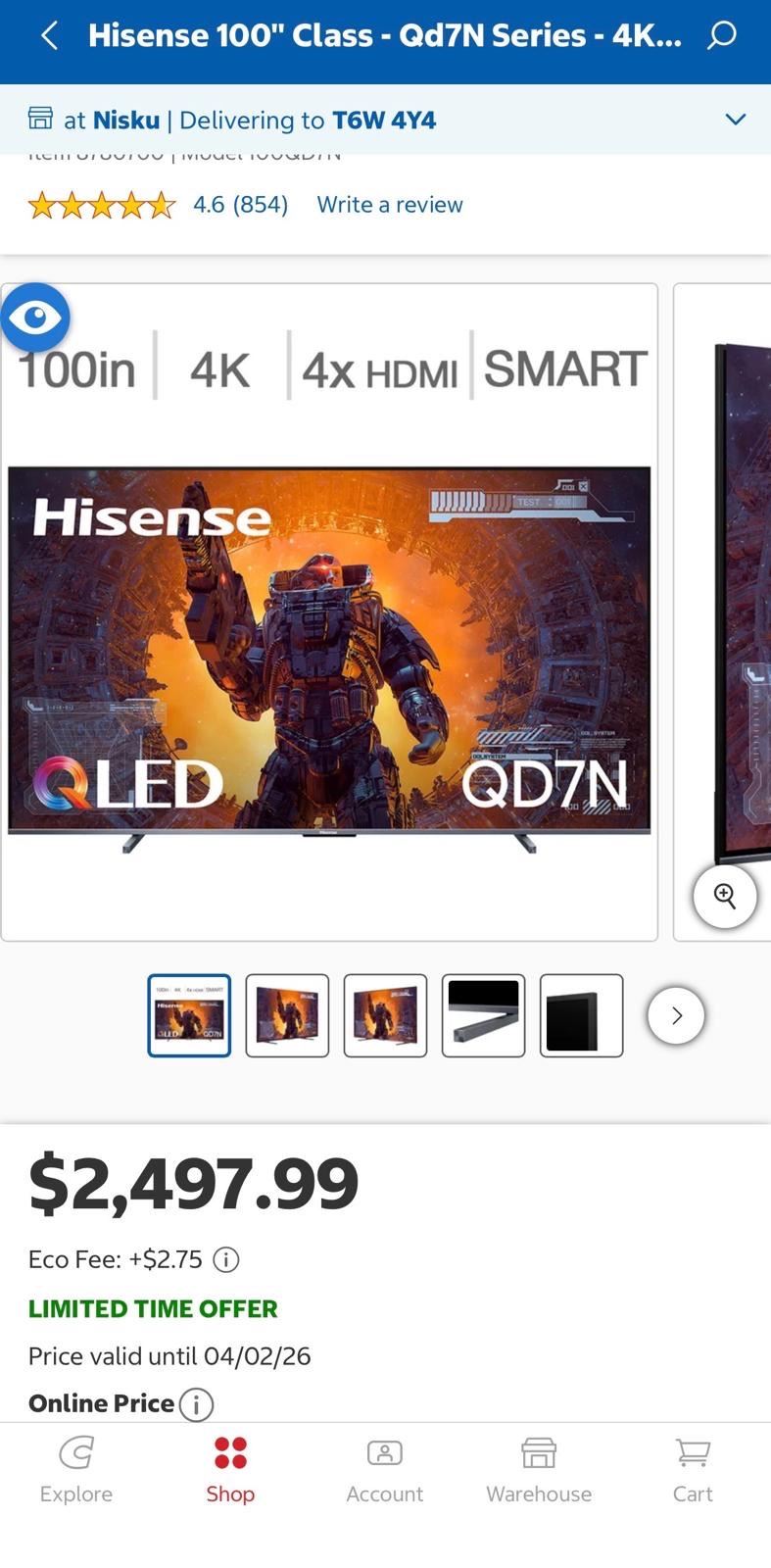 Lot 1696a HISENSE 100" 4K UHD 4XHDMI SMART QLED TV MODEL QD7N