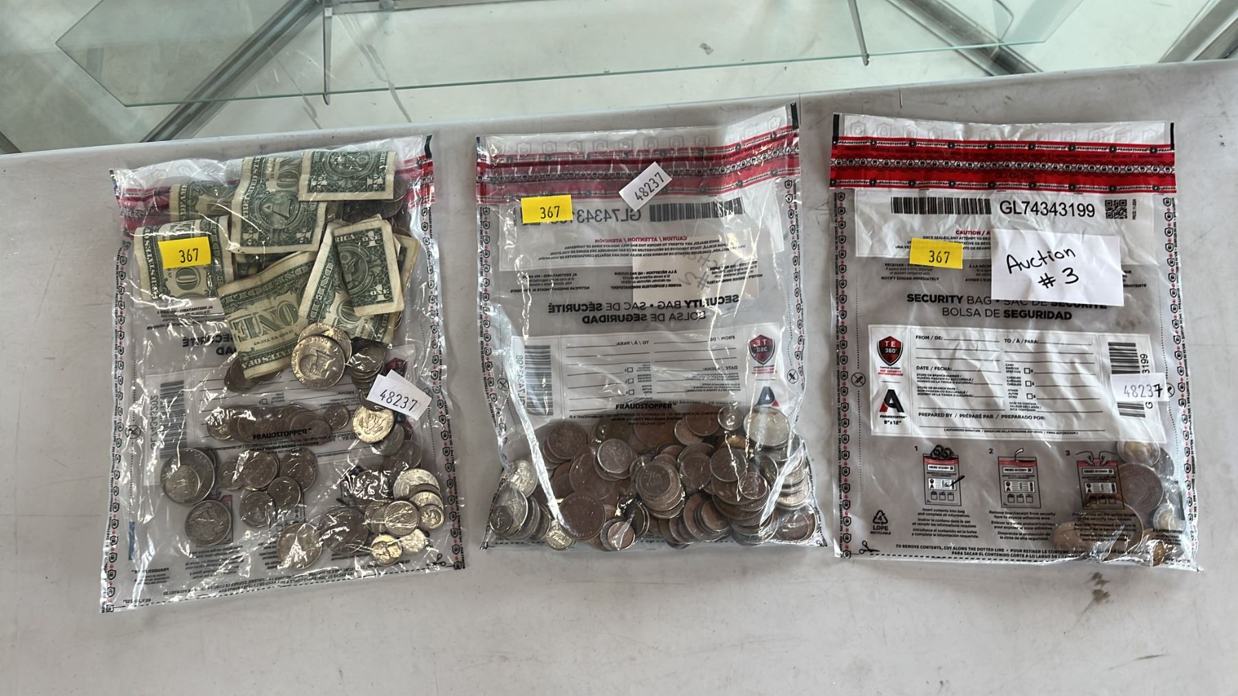 Lot 367 (3) BAGS OF ASSORTED COINS & US BILLS