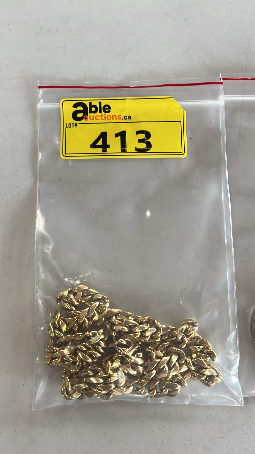 Lot 413 CUBAN LINK CHAIN NECKLACE, GOLD TONE RING & .925 SILVER BRACELET