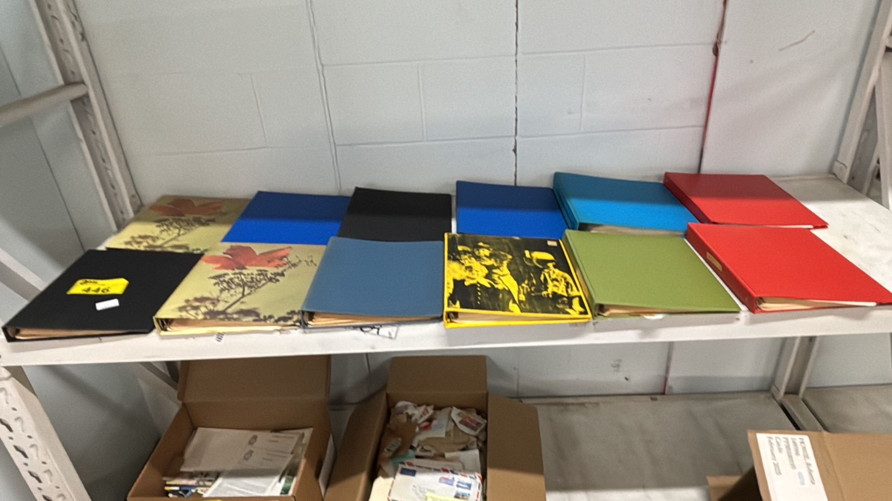 Lot 446 SHELF OF ASSORTED BINDERS OF STAMPS