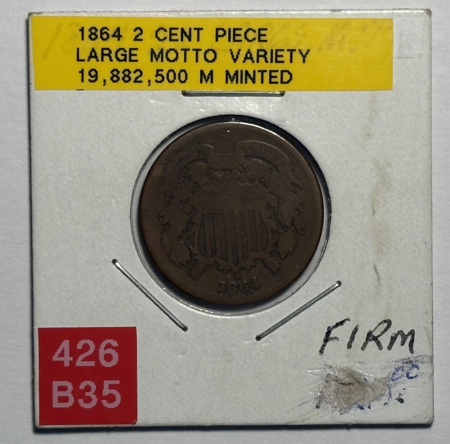 Lot 1070 1864 U.S. Collectible Two-Cent Piece
