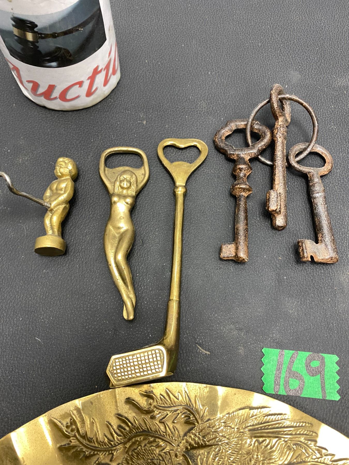 Lot 169 Vintage brass items and antique skeleton keys