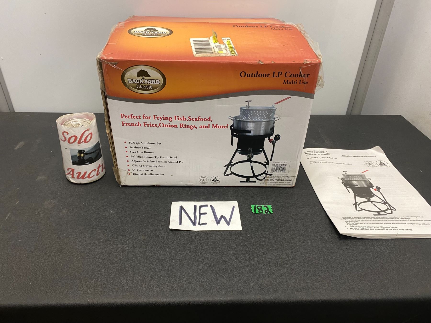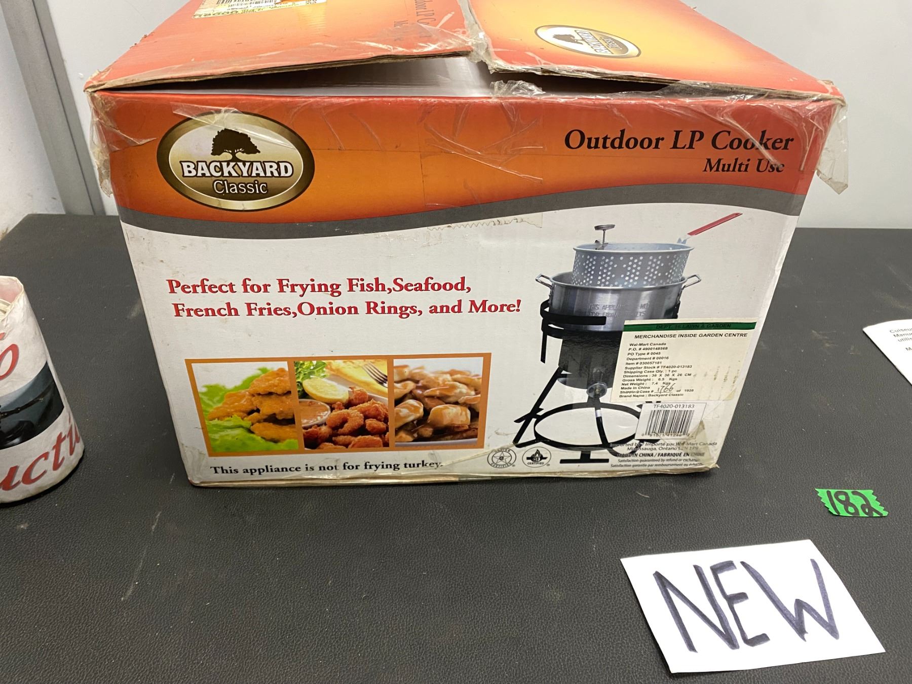 Lot 182 Outdoor LP cooker perfect for frying fish, seafood, French fries, onion rings and more