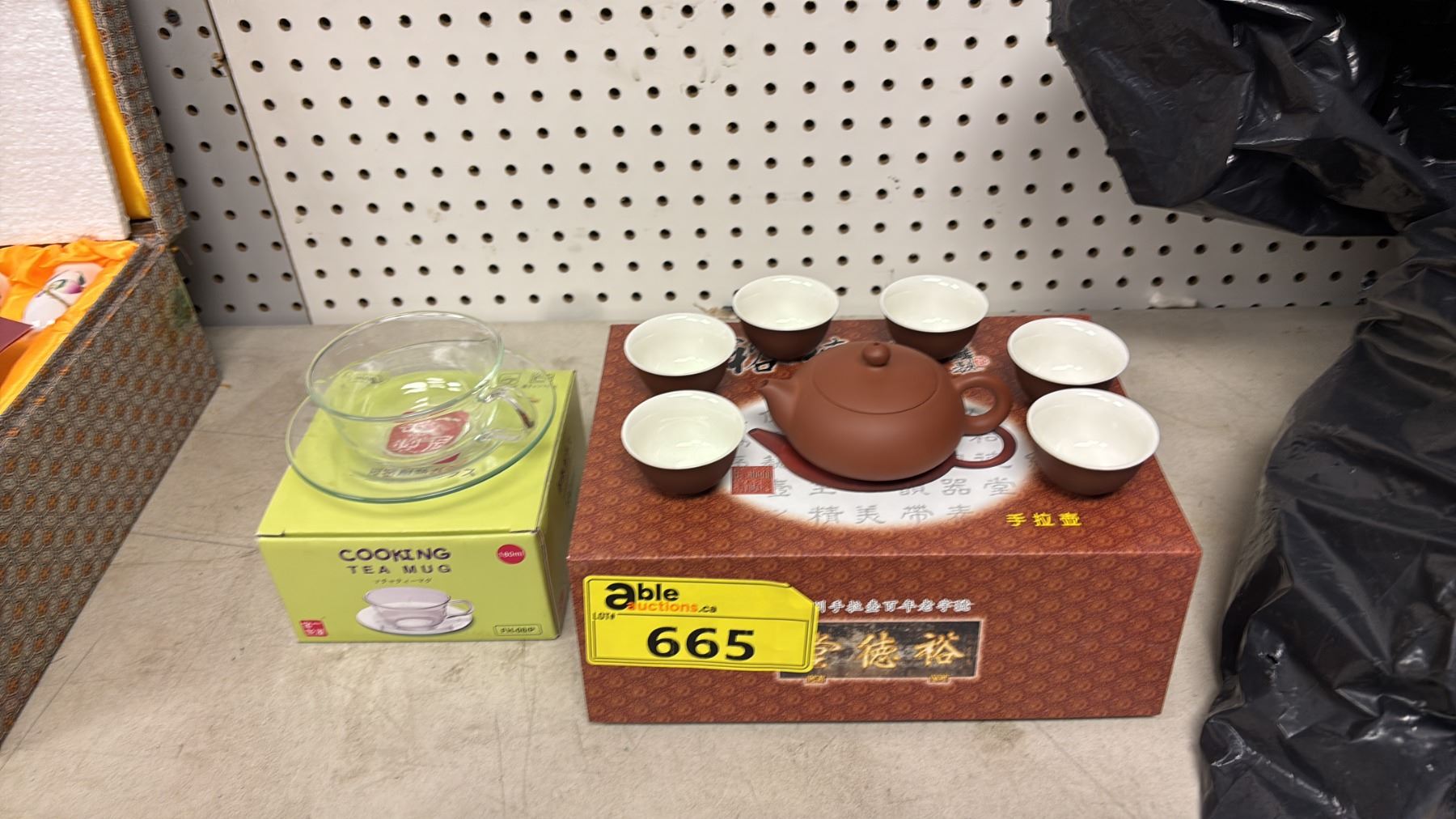 Lot 665 HANDMADE RED CLAY TEAPOT WITH 6 CUPS & GLASS COOKING TEA CUP