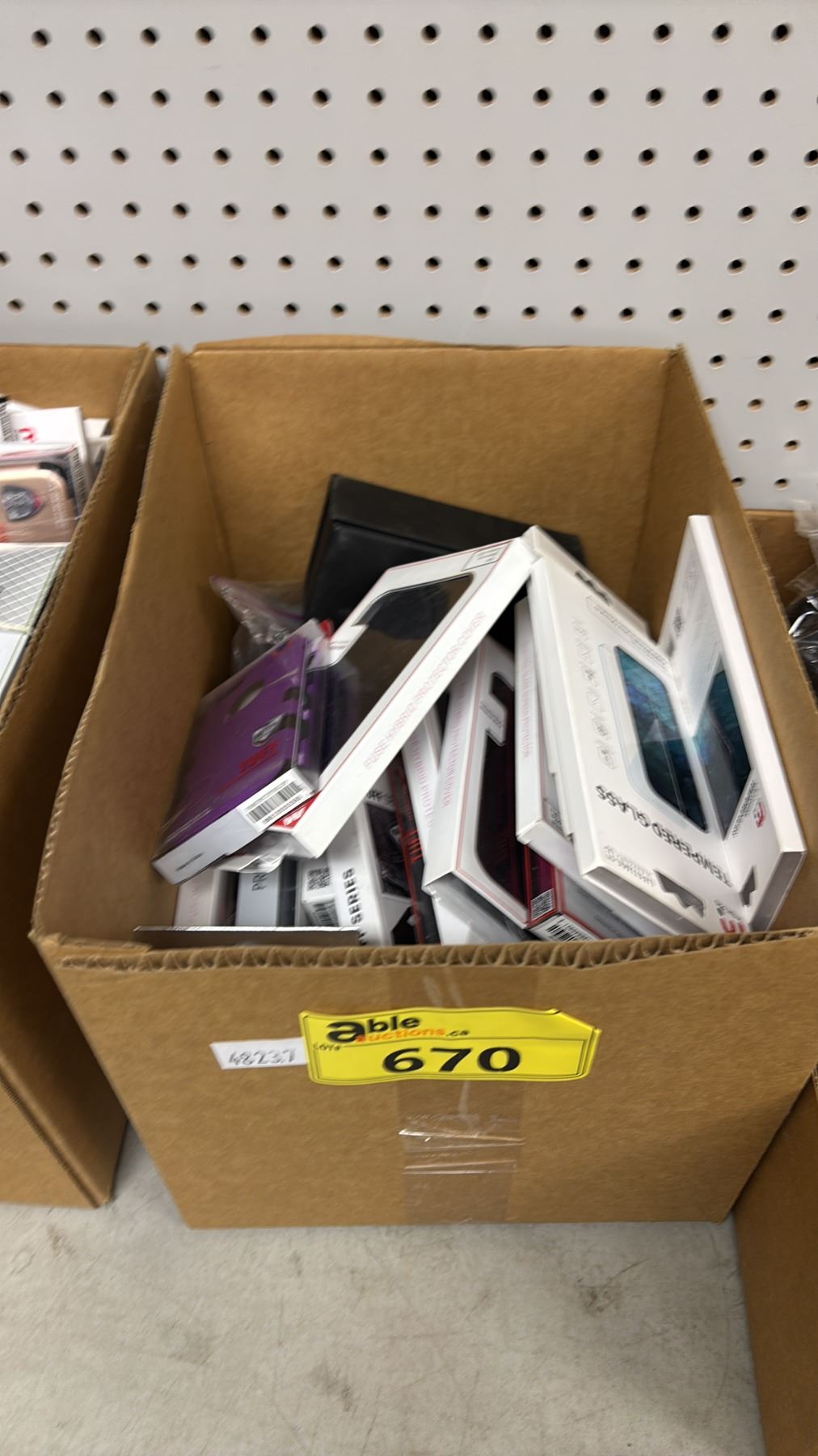 Lot 670 BOX OF CELL PHONE SCREEN PROTECTORS& ASSORTED CELL PHONE CASES