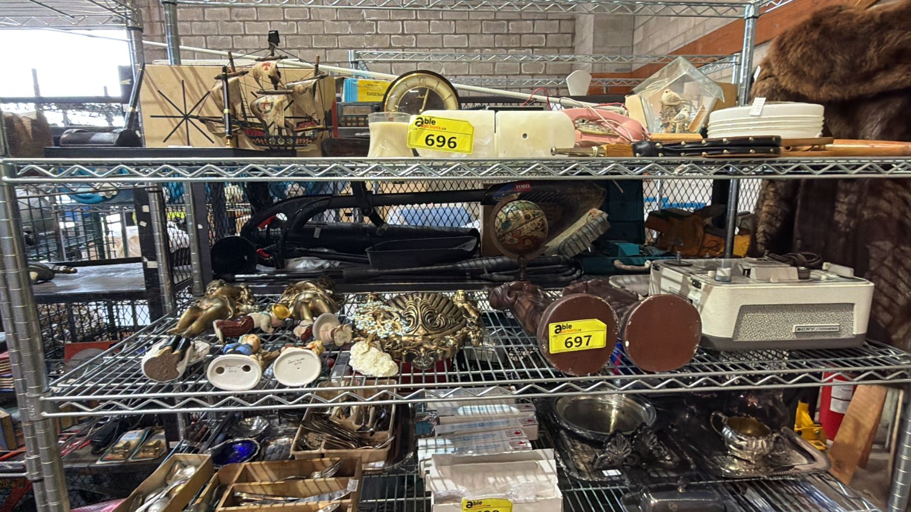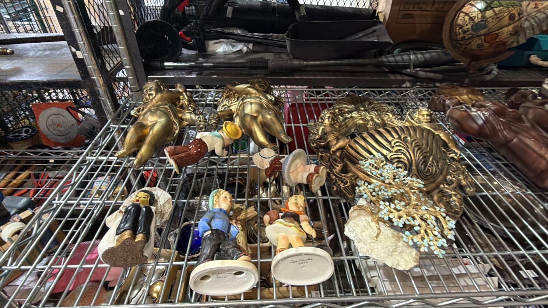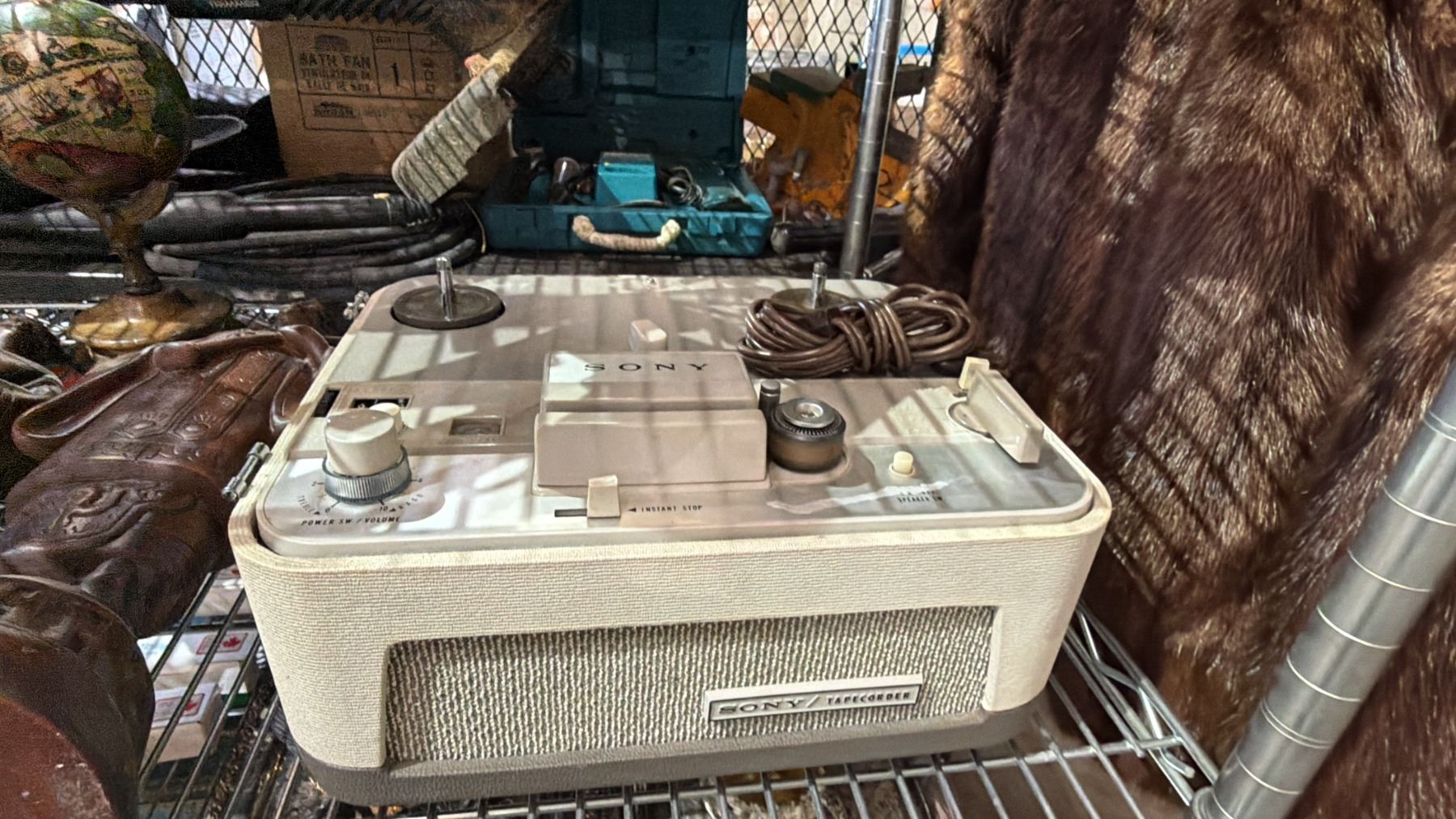 VINTAGE SONY REEL-TO-REEL TAPECORDER, CERAMIC FIGURINES, SMALL GLOBE, CHALKWARE ASIAN FIGURES & MORE