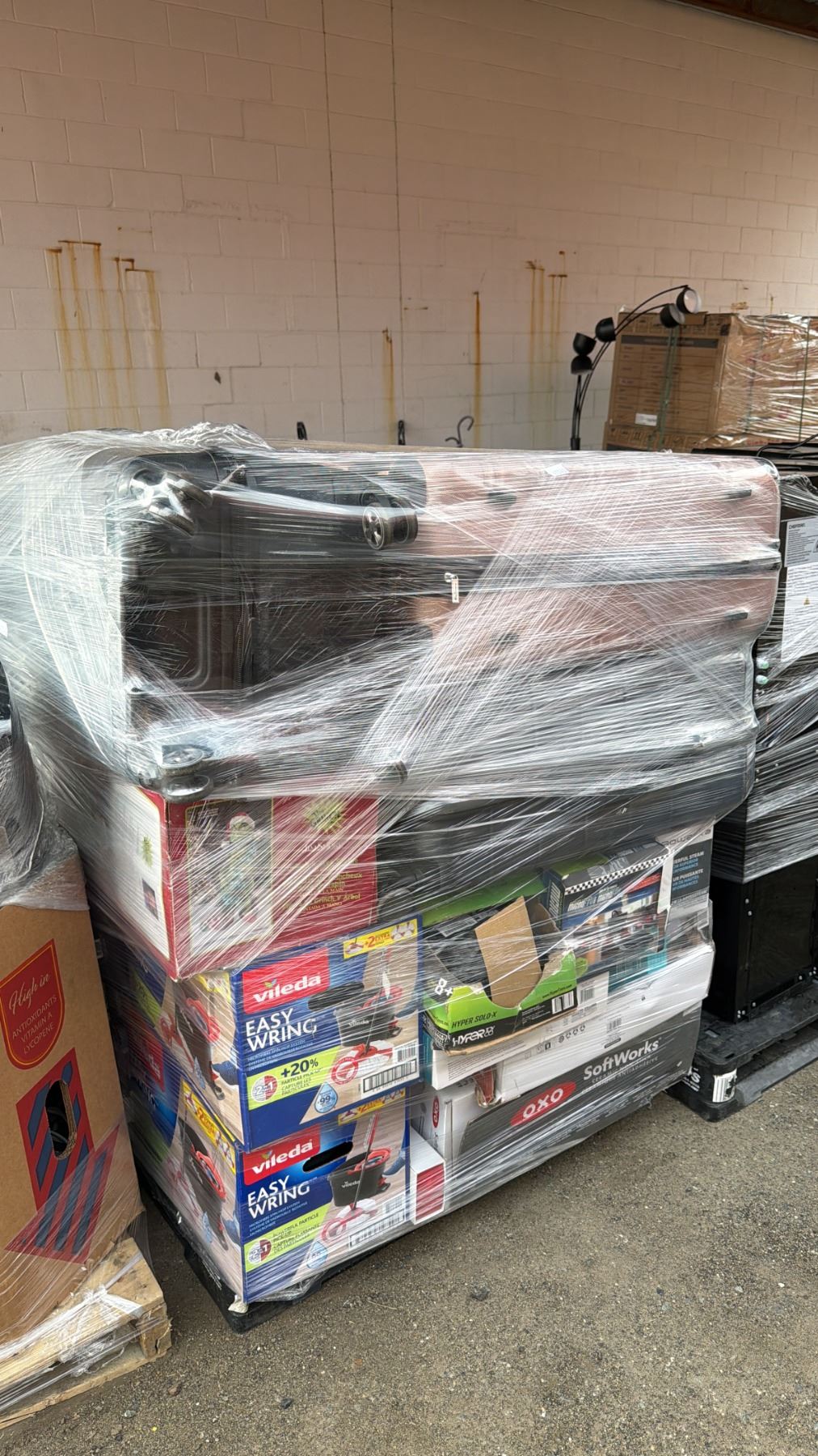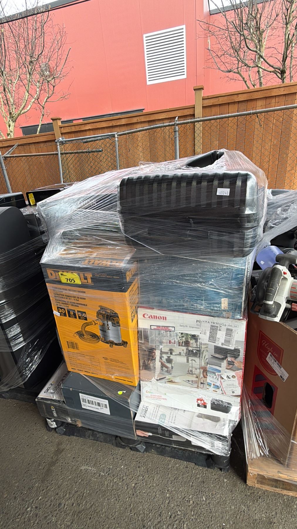 Lot 705 PALLET OF ASSORTED HOUSEHOLD GOODS: VACUUMS, LUGGAGE, CANON PRINTER, SOCCER TRAINER & MORE