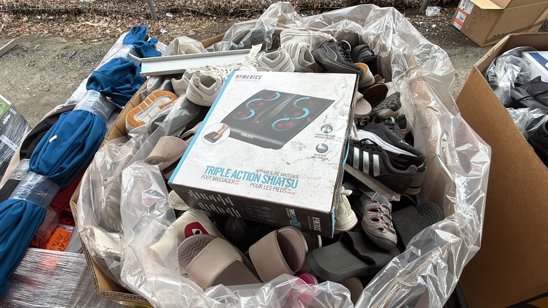 Lot 709 PALLET OF ASSORTED FOOTWEAR & A HOMEDICS FOOT MASSAGER: *MUST TAKE ALL ON PALLET*