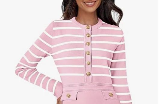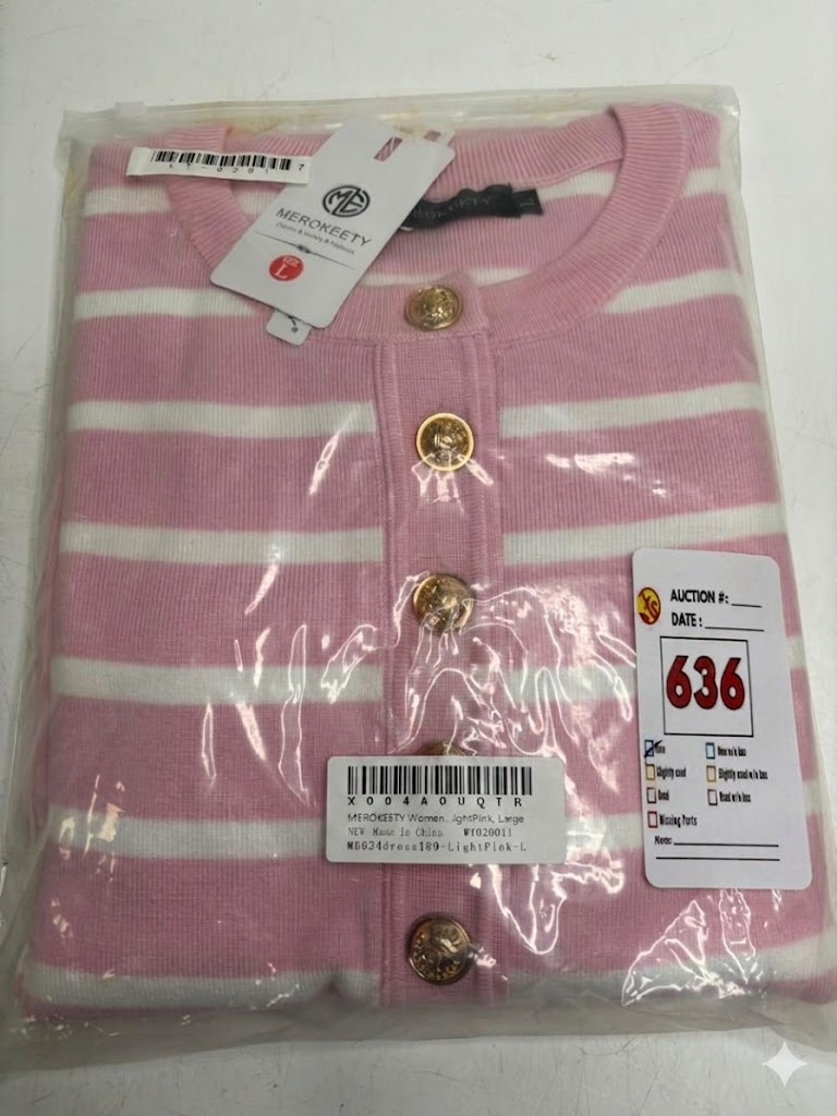 Lot 636 MEROKEETY WOMEN'S LONG SLEEVE STRIPED SWEATER L -N
