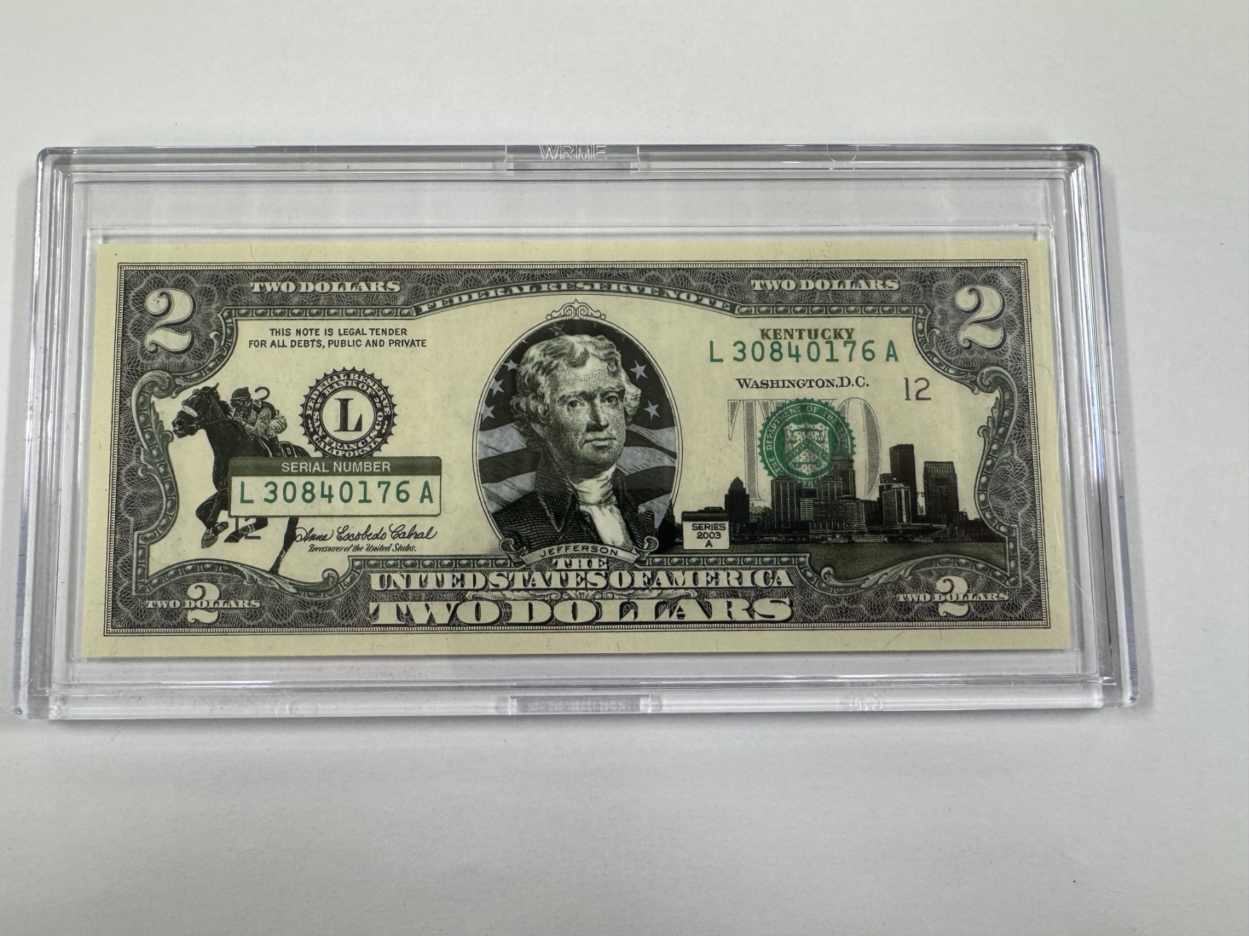 Lot 429 2003 United States Jefferson KENTUCKY $2.00 Bill In Hard Case Holder - Mint Condition - RARE