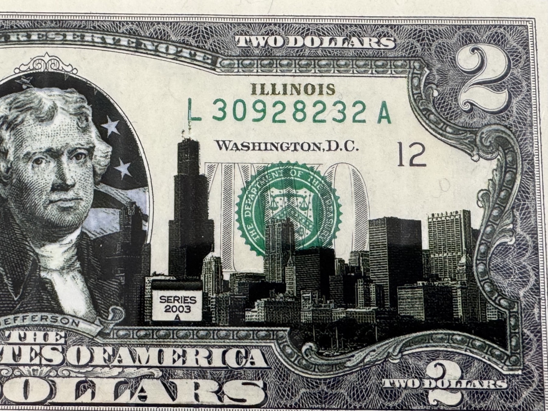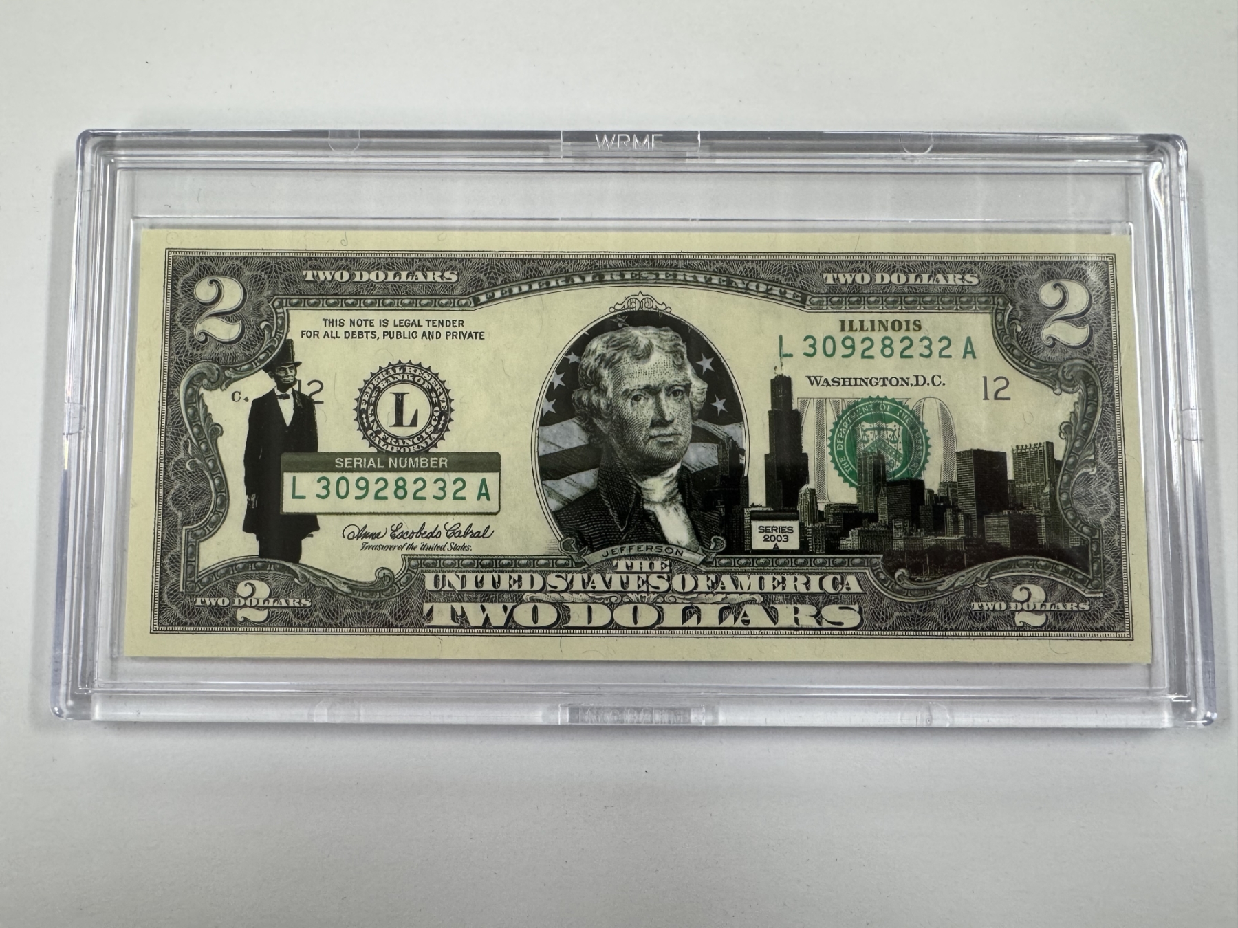 2003 United States Jefferson ILLINOIS $2.00 Bill In Hard Case Holder - Mint Condition - RARE