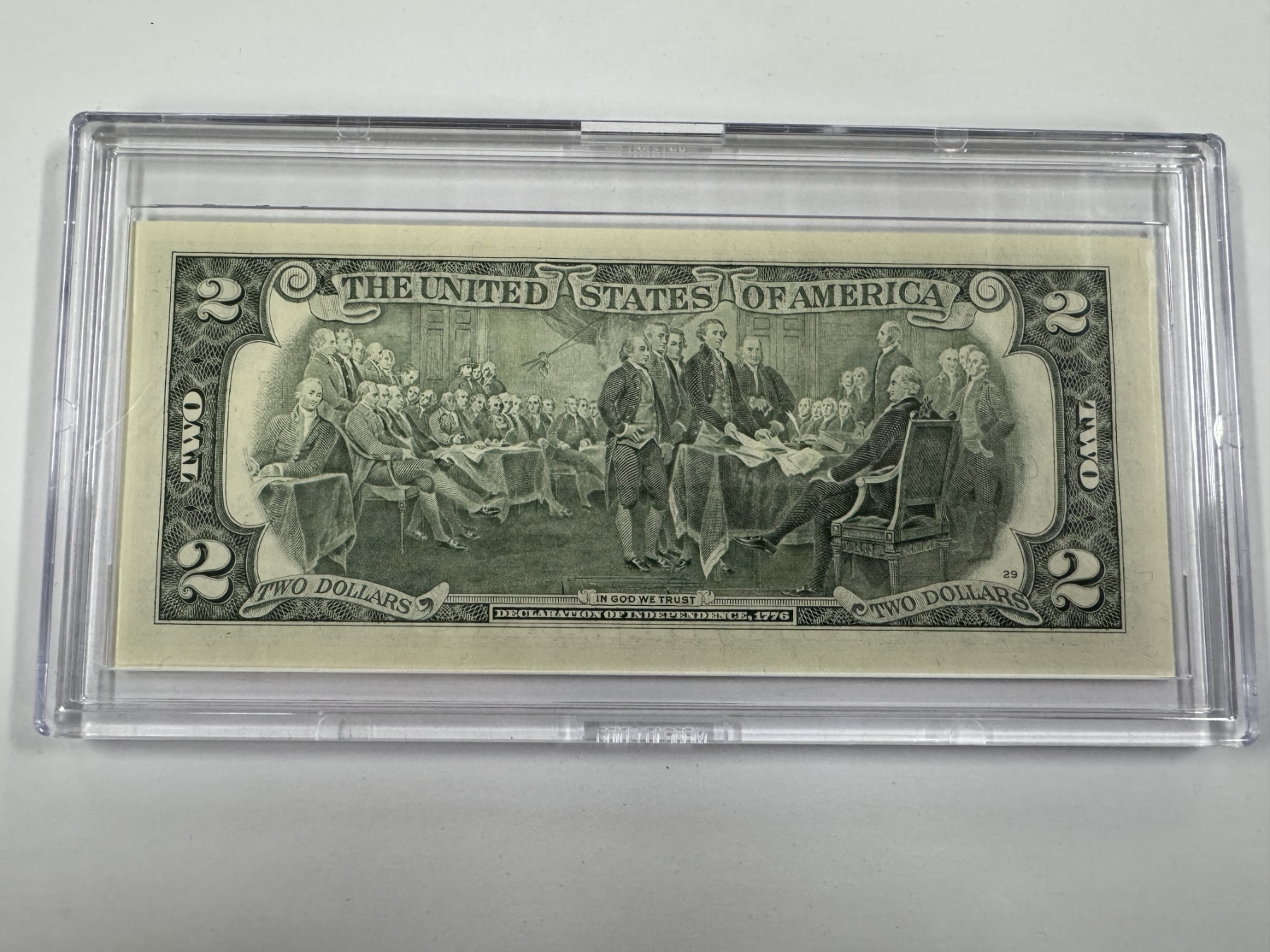 Lot 570 2003 United States Jefferson ILLINOIS $2.00 Bill In Hard Case Holder - Mint Condition - RARE