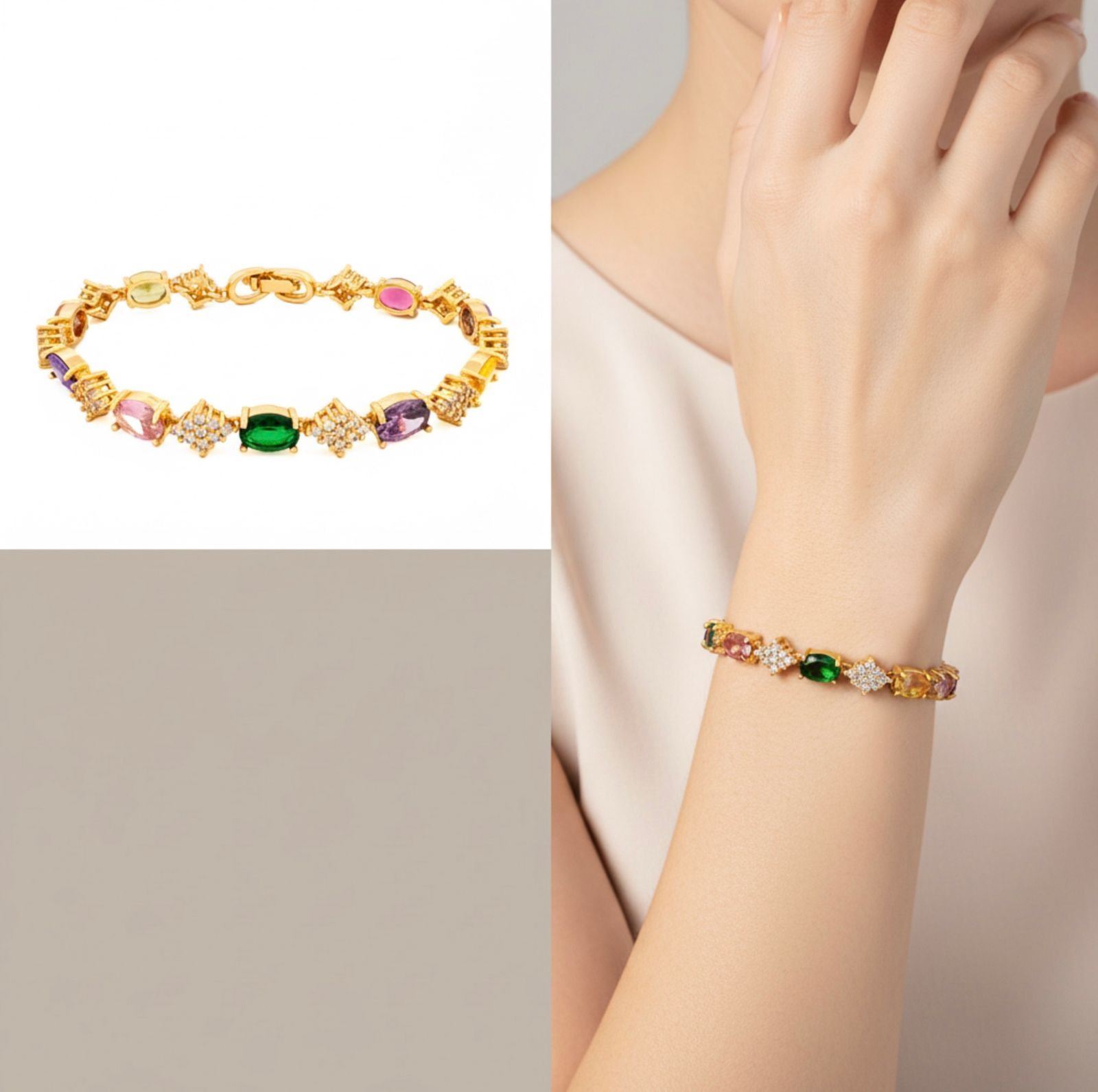 Lot 32 18kt Oro Laminado Gemstone Bracelet - 9 Coloured O
