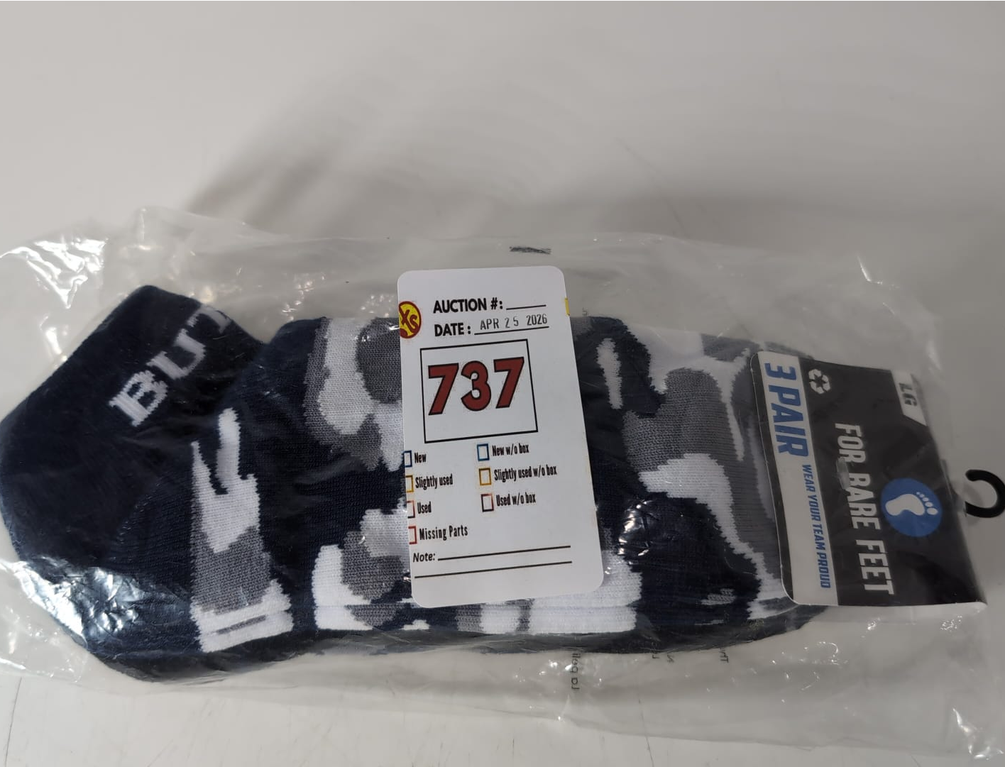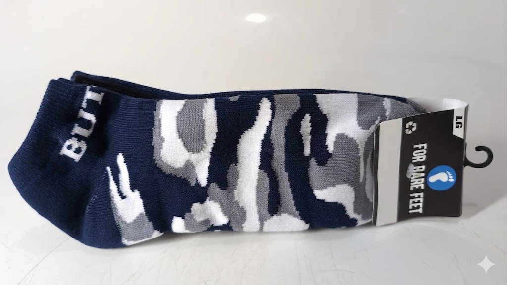 Lot 737 FOR BARE FEET NCAA BUTLER BULLDOGS CAMO BOOM ANKLE SOCK TEAM COLORS LARGE -N