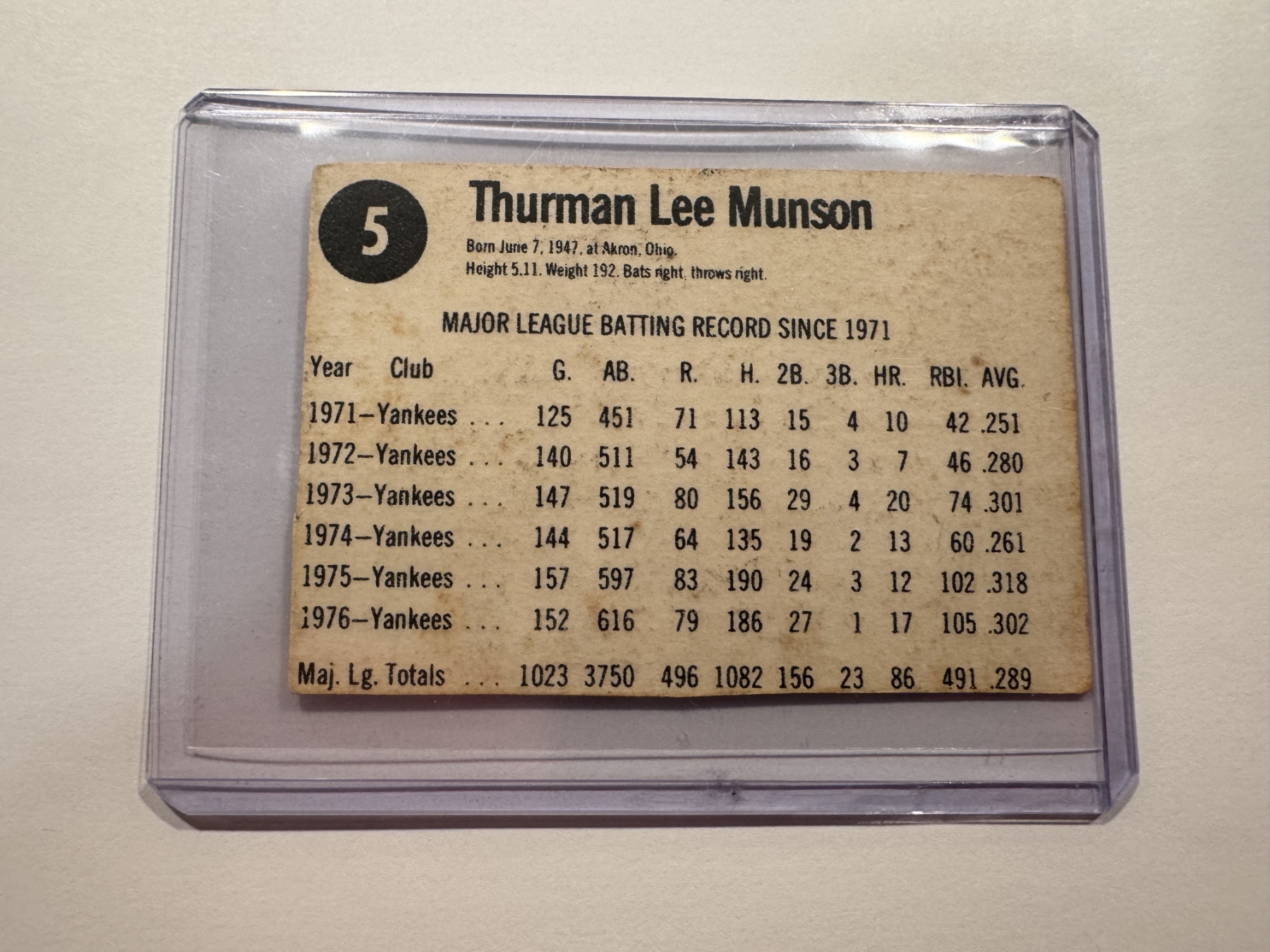 1977 Hostess Thurman Munson "The Captain" Baseball Ball Card In Protective Holder - Mint