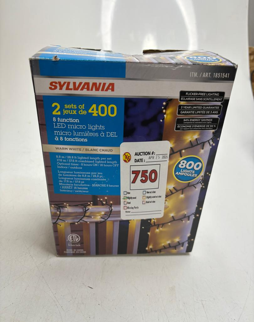 Lot 750 SYLVANIA 2 X 400 WHITE MICRO LED CHRISTMAS LIGHTS -SU