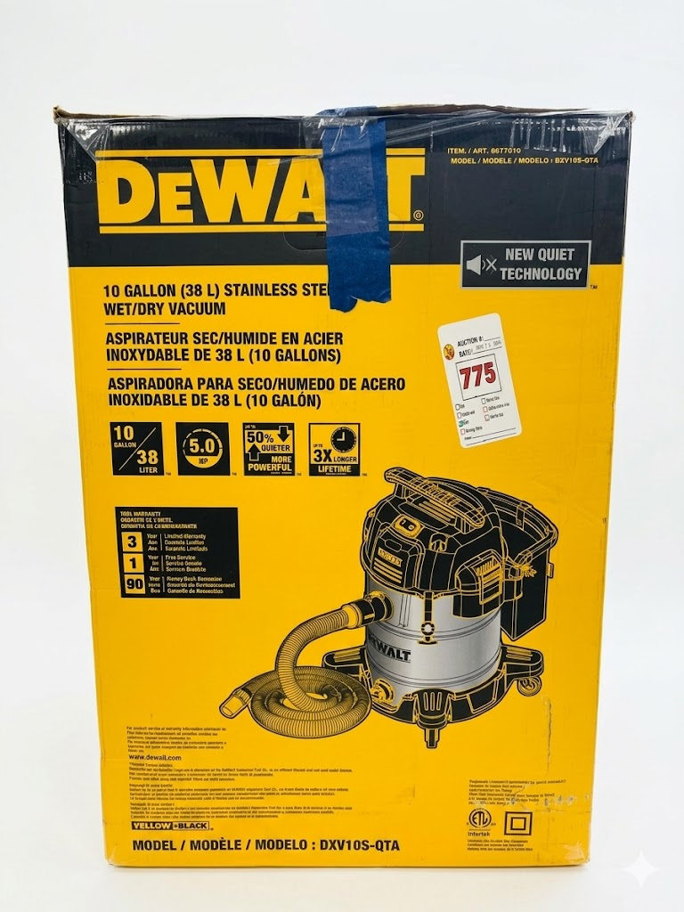 Lot 775 DEWALT® WET/DRY VACUUM - 10 GALLON, STAINLESS STEEL -U