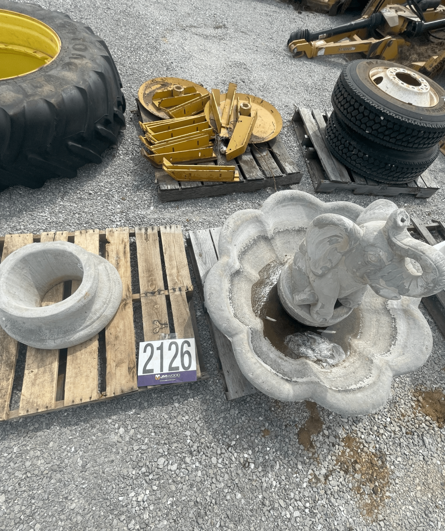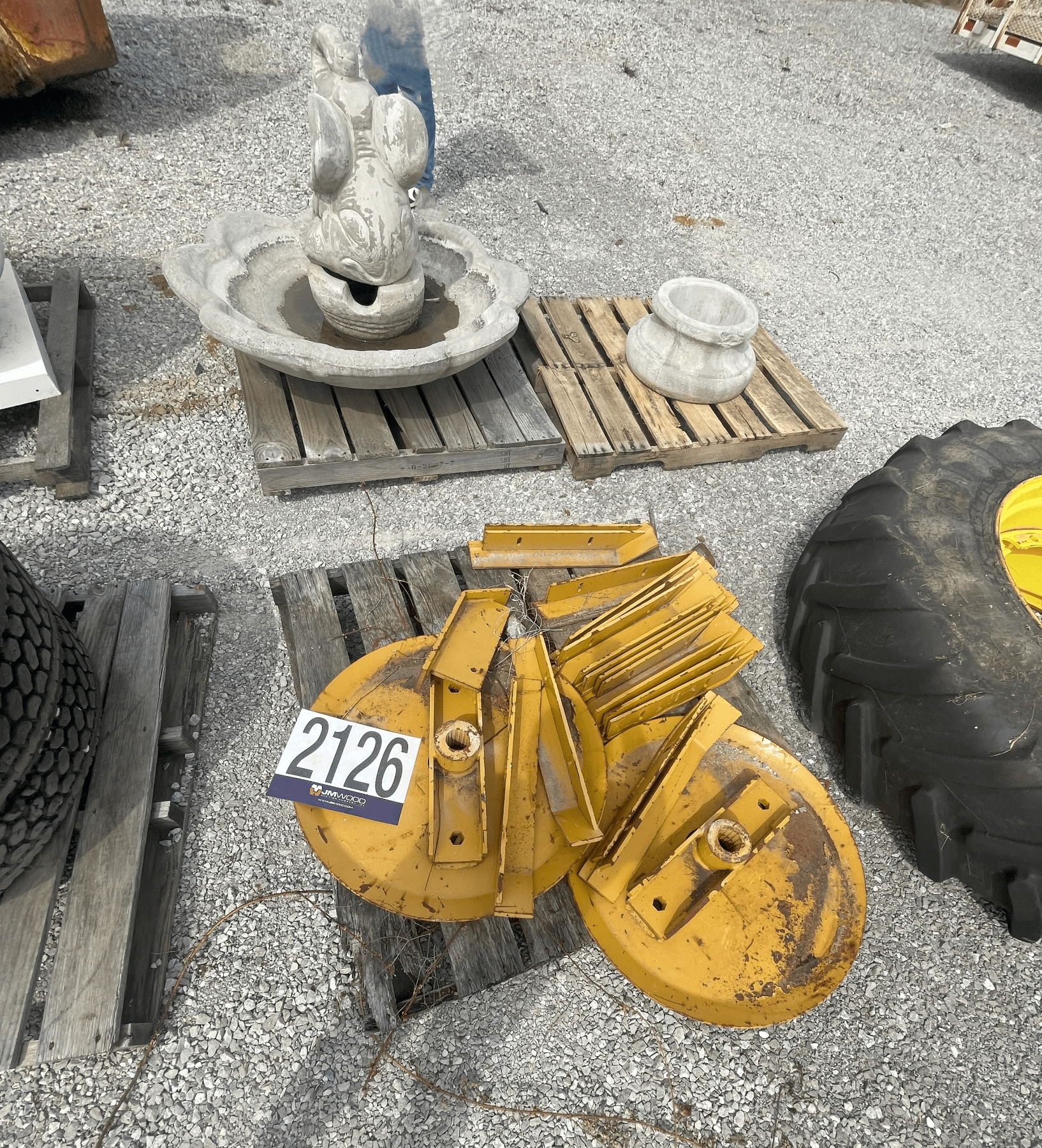Lot 2126 TIRES, VENT, BIRD BATH & IMPLEMENT PARTS
