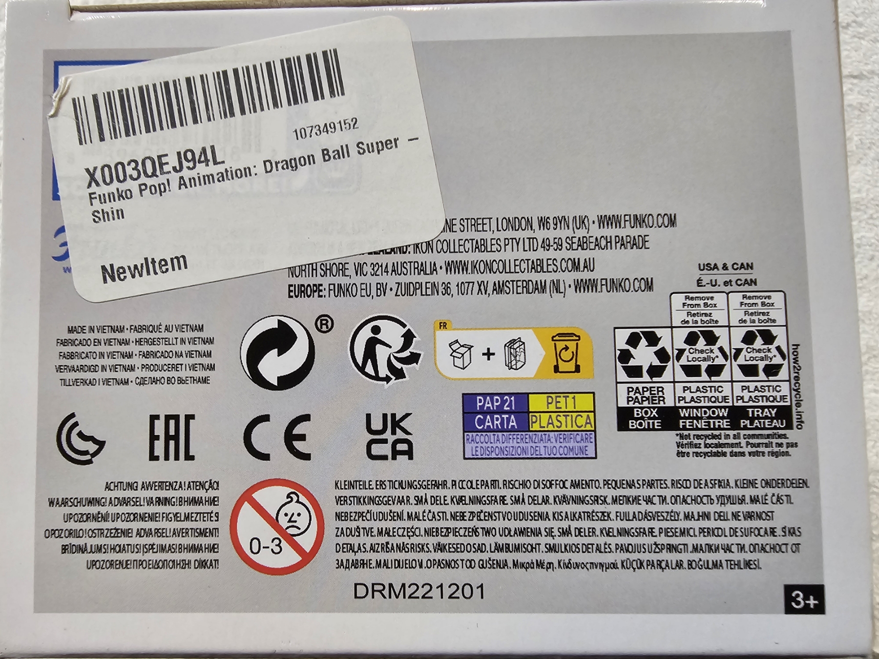 Lot 498 Funko Pop! Animation - Dragonball Super #1283 - Shin