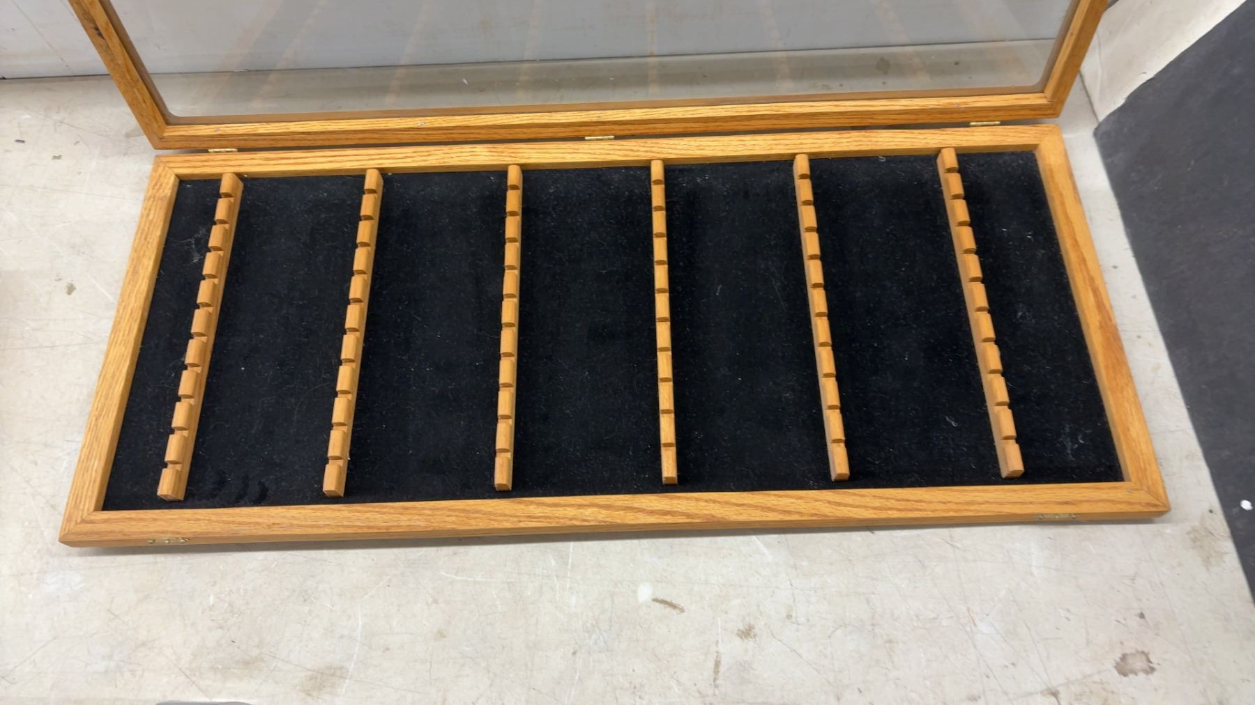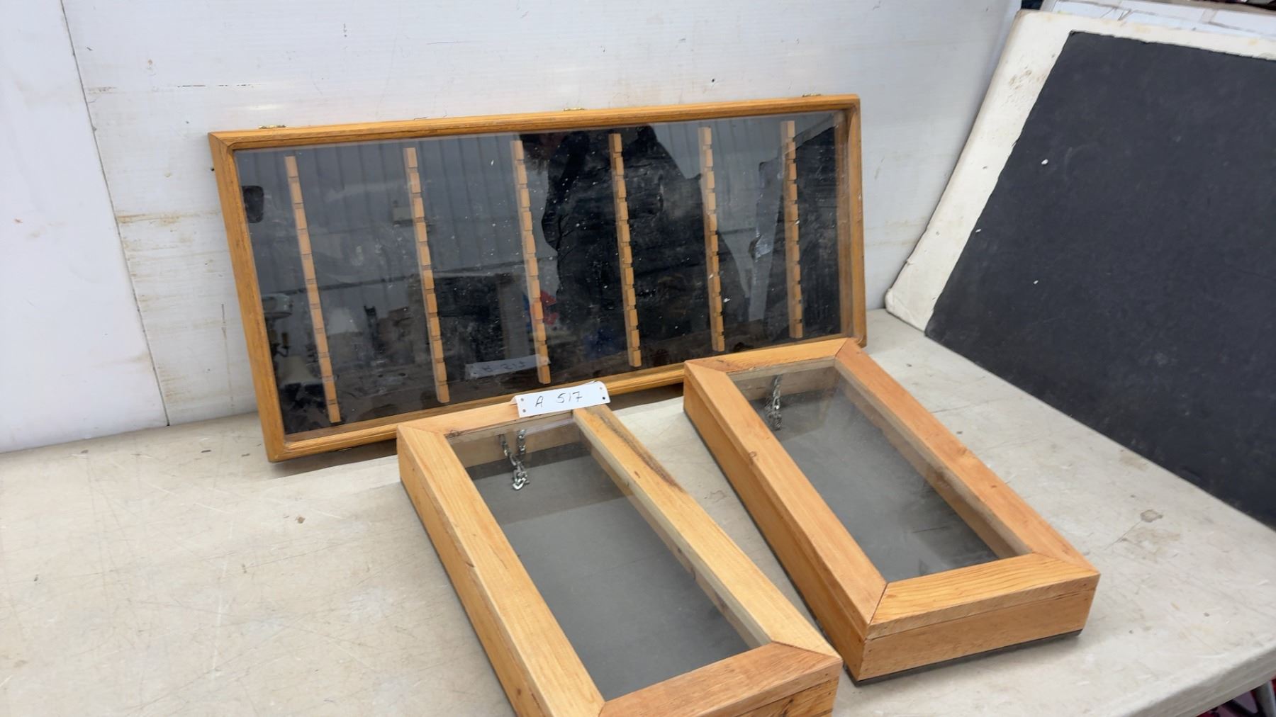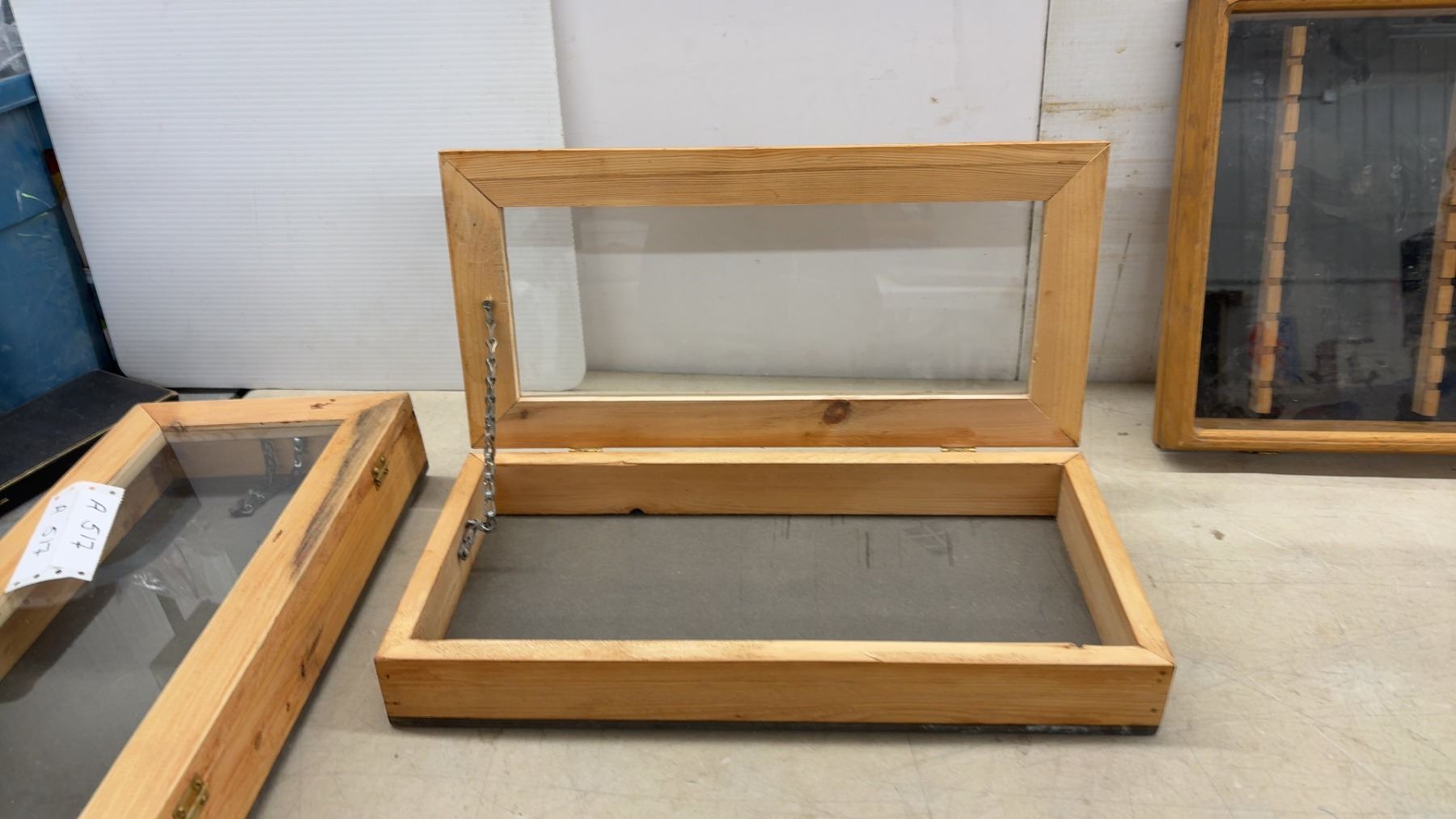 Lot 517 Wooden Display Cases with Glass Lids, 2 @ 18 1/2 x 9 x 3" & 32 x 14 x 2 1/4"