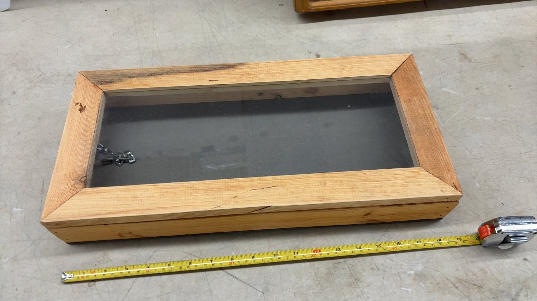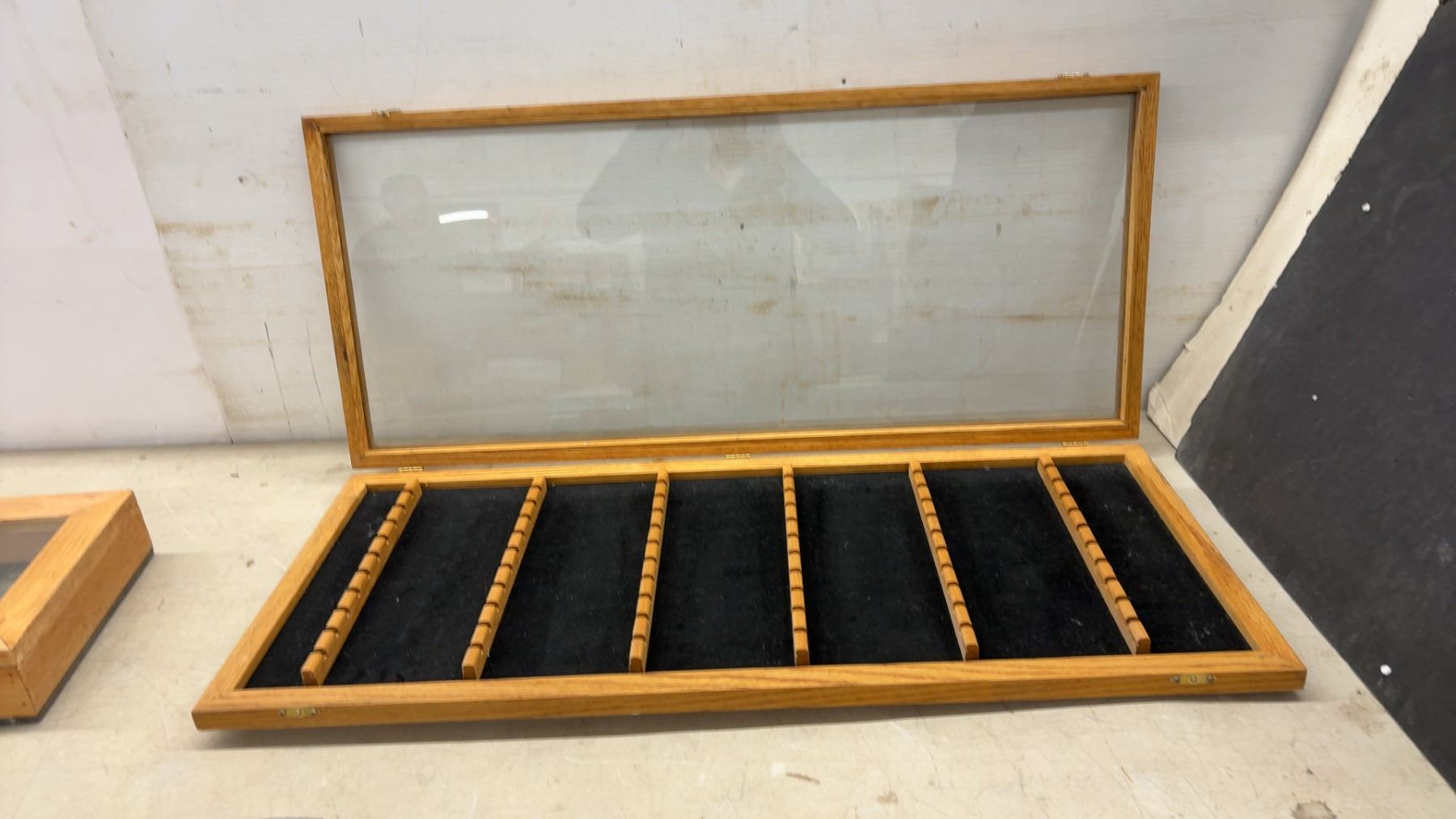 Wooden Display Cases with Glass Lids, 2 @ 18 1/2 x 9 x 3" & 32 x 14 x 2 1/4"