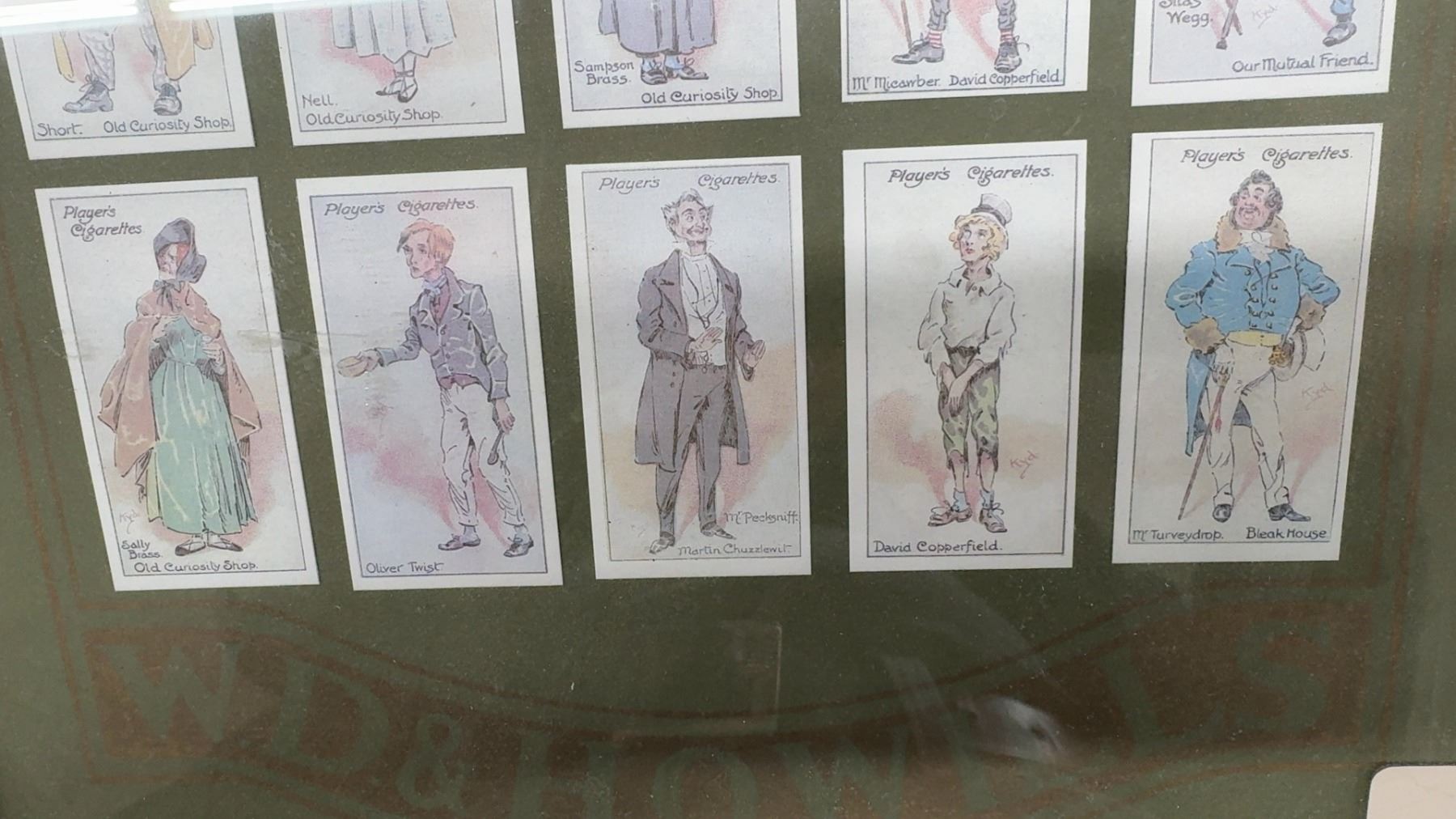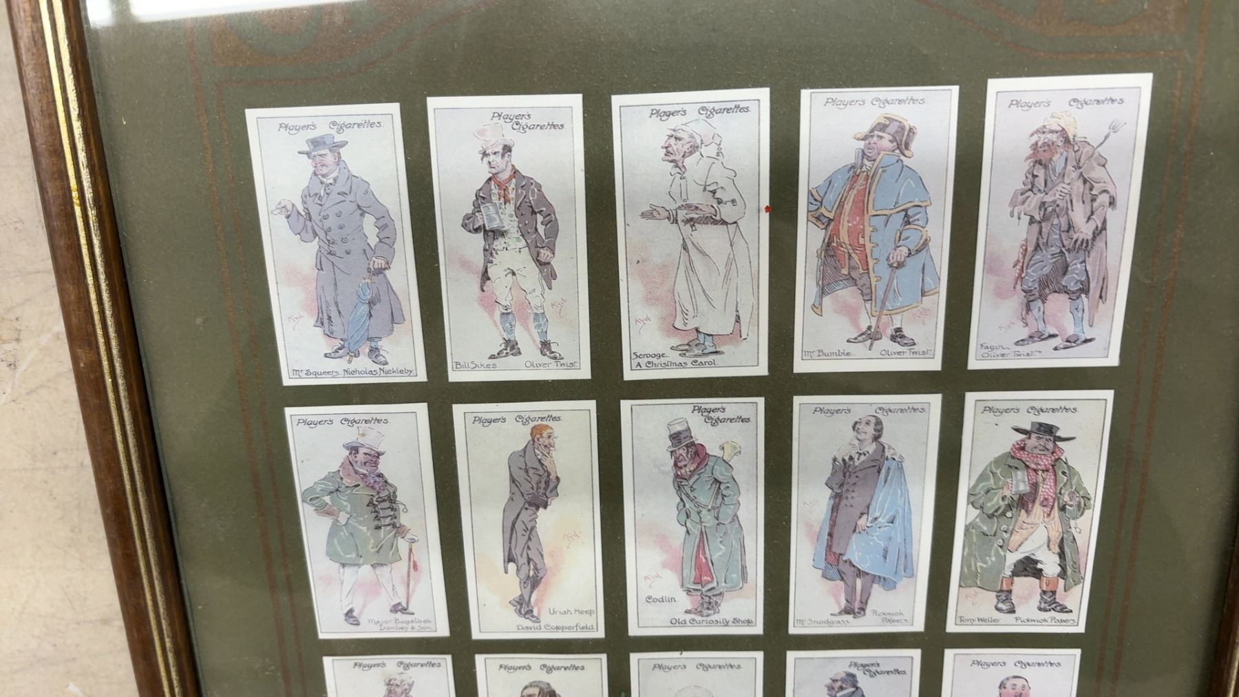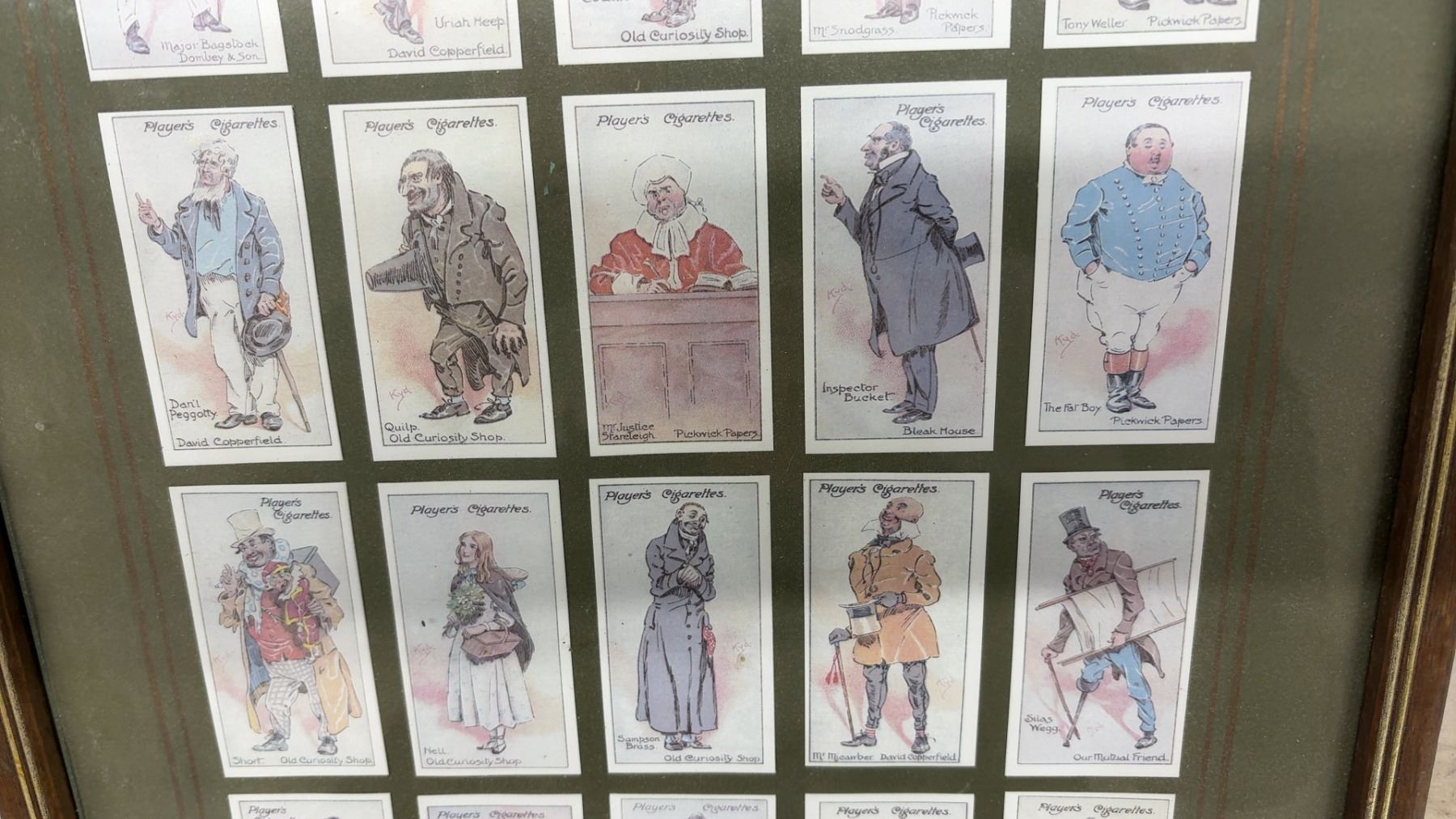 Framed Set of Player's Cigarettes Cards Featuring Charles Dickens Characters, 25 Cards Displayed 23