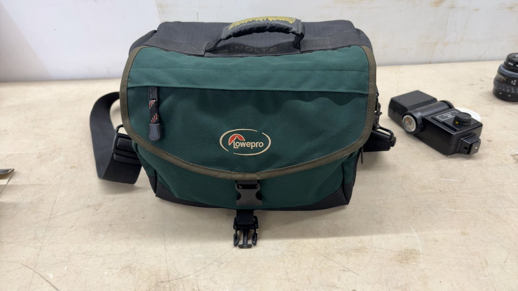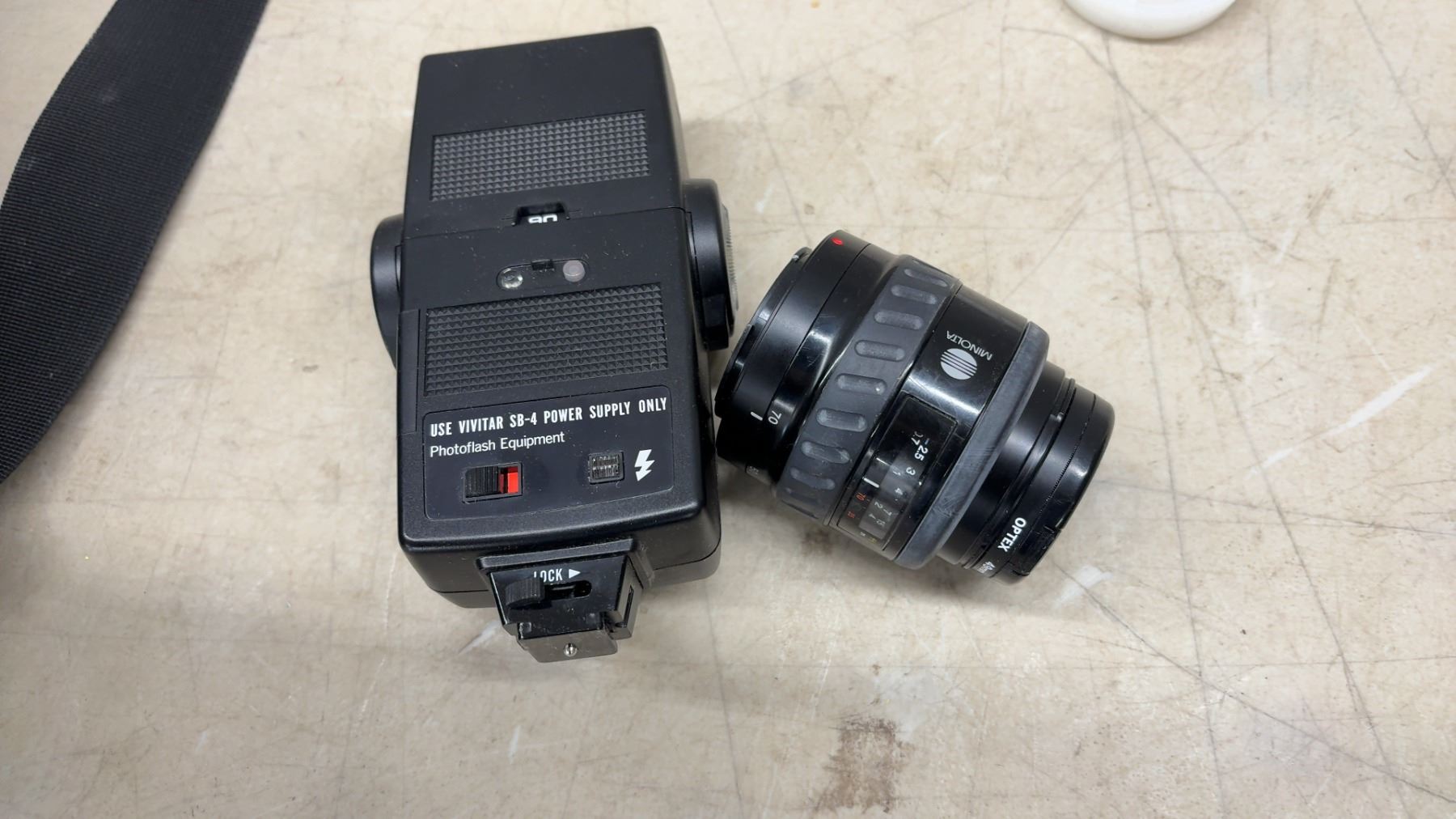 Lot 409 Minolta Maxxum 3xi Camera w/ 35-70mm & 80-200mm Lenses, Vivitar 283 Flash, Lowepro Bag