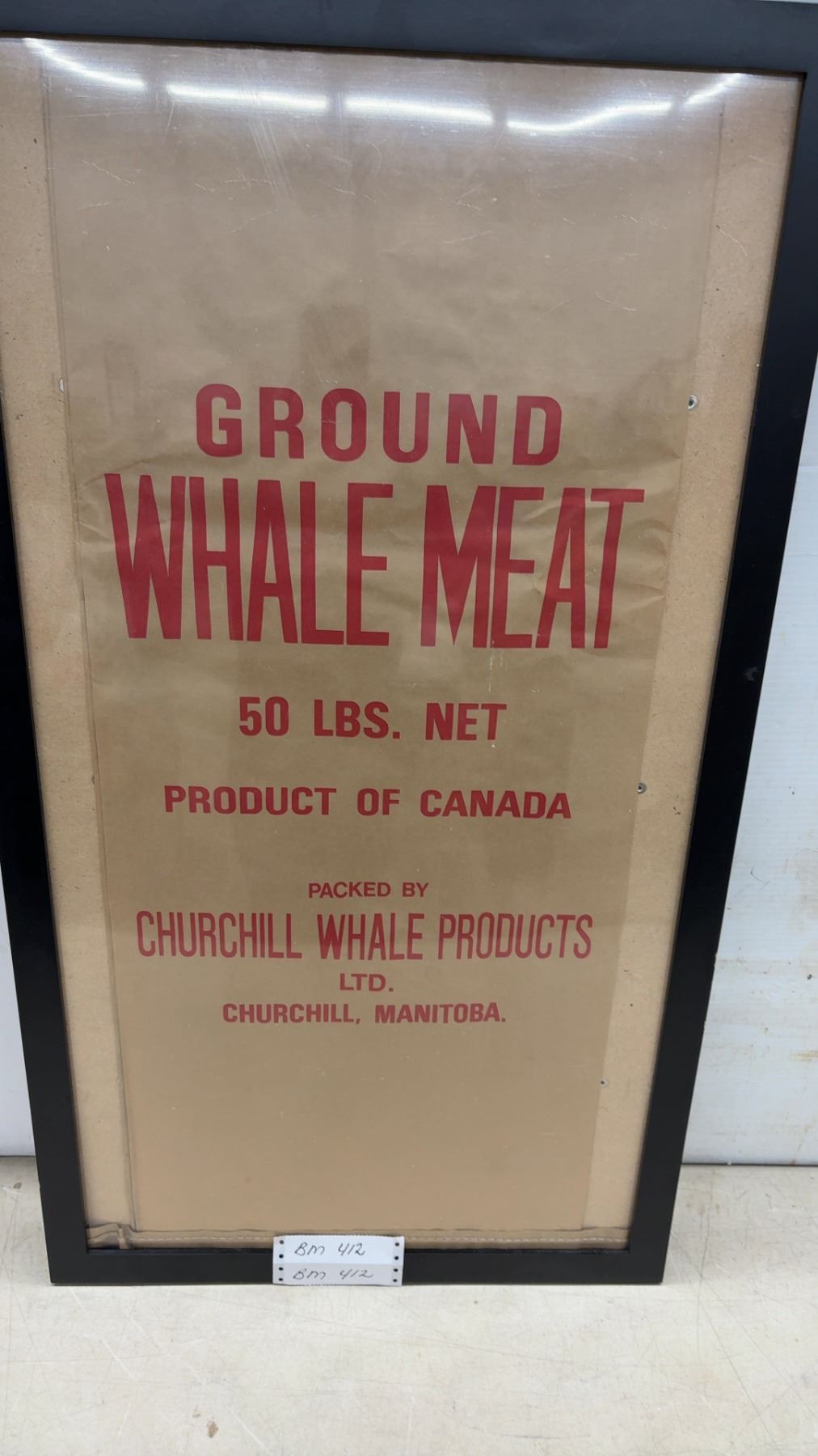 Lot 412 Framed Churchill Whale Products Ltd. Ground Whale Meat 50 Lb Bag, C.1968, Churchill Manitoba