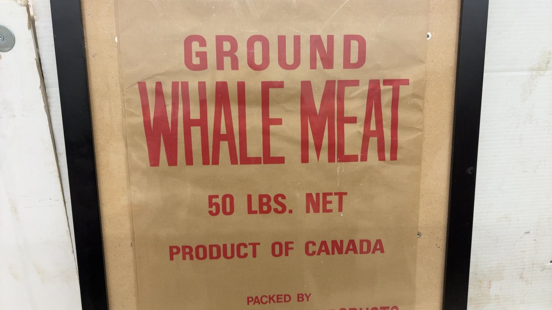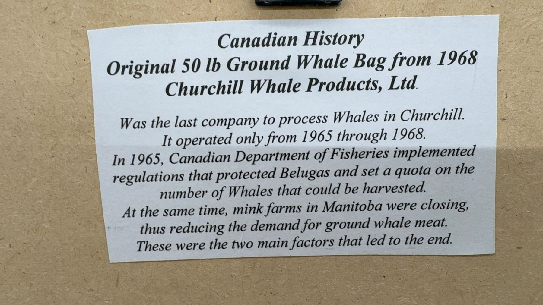 Framed Churchill Whale Products Ltd. Ground Whale Meat 50 Lb Bag, C.1968, Churchill Manitoba