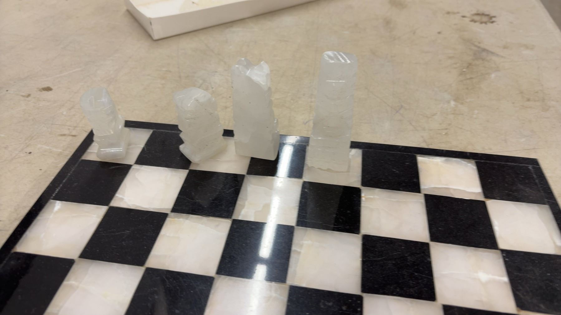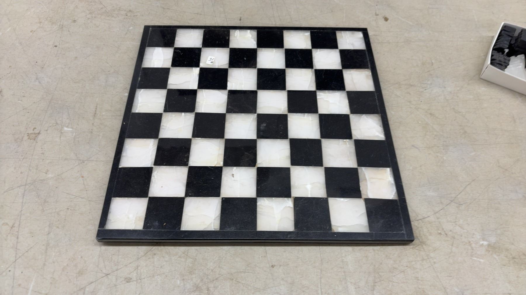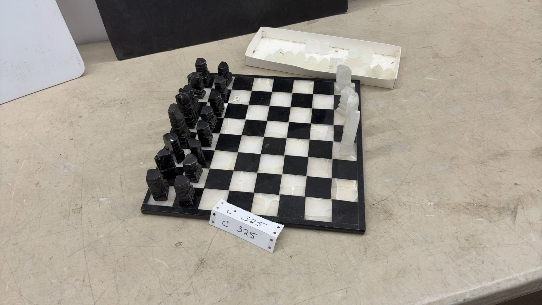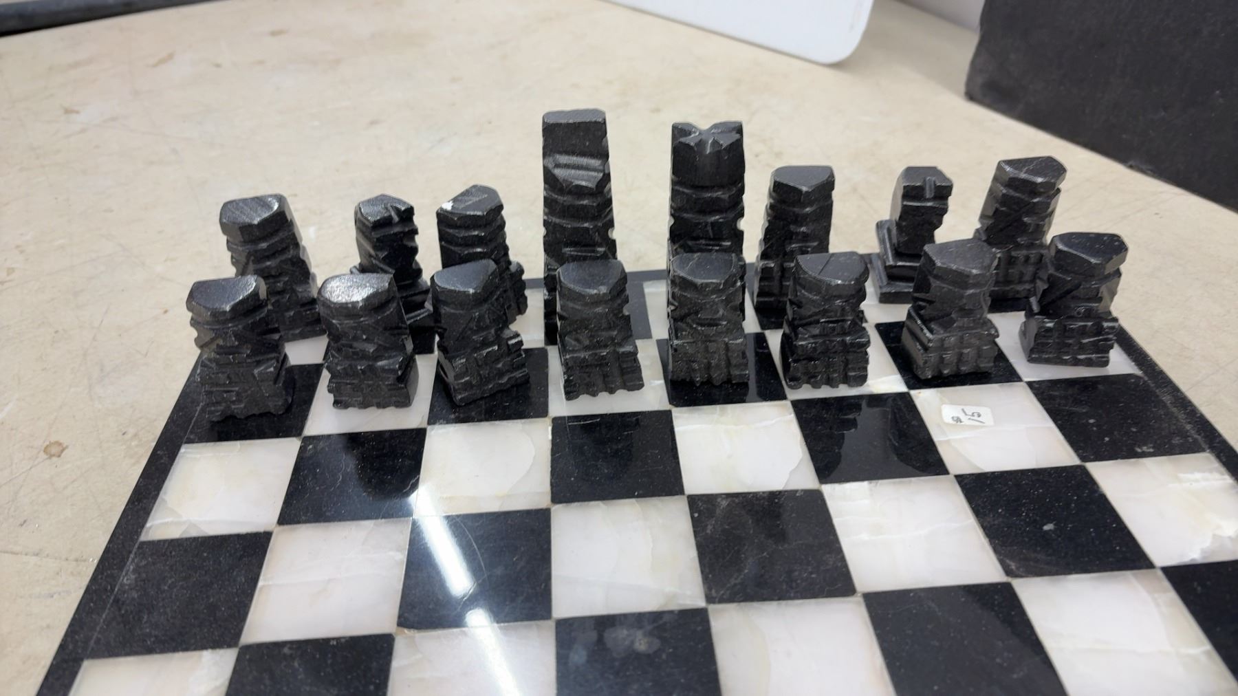 Lot 322 Mexican Aztec/Mayan Style Onyx & Marble Chess Set with Board and 32 Pieces
