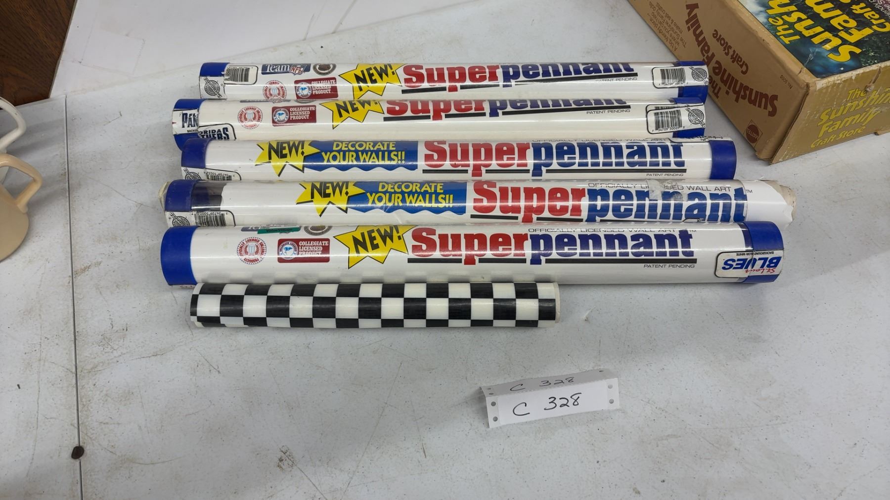 Lot 328 Universal Heights Super Pennant Sports Wall Art Lot of 5 - NFL, NHL, MLB Teams 20 x 49"