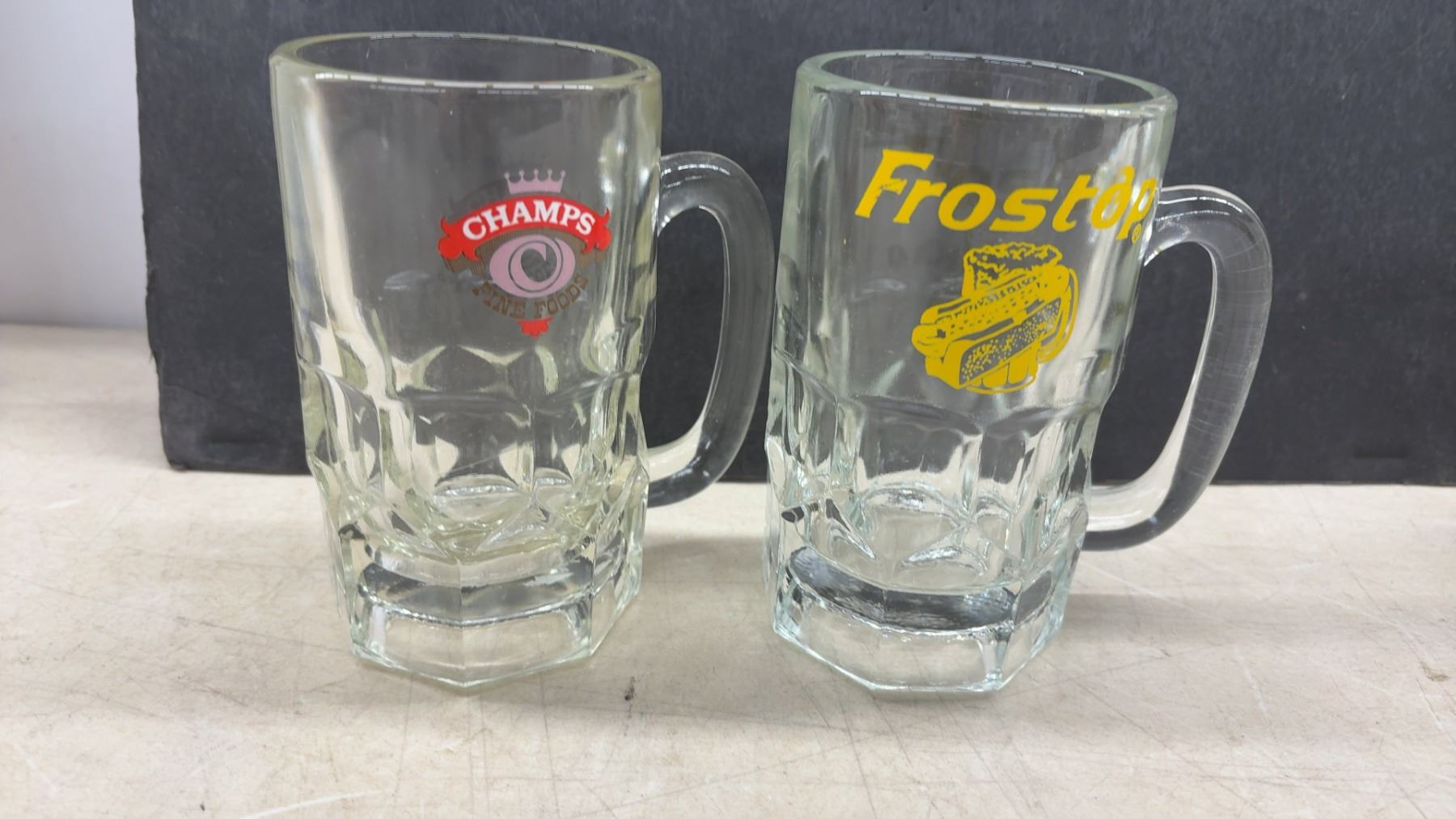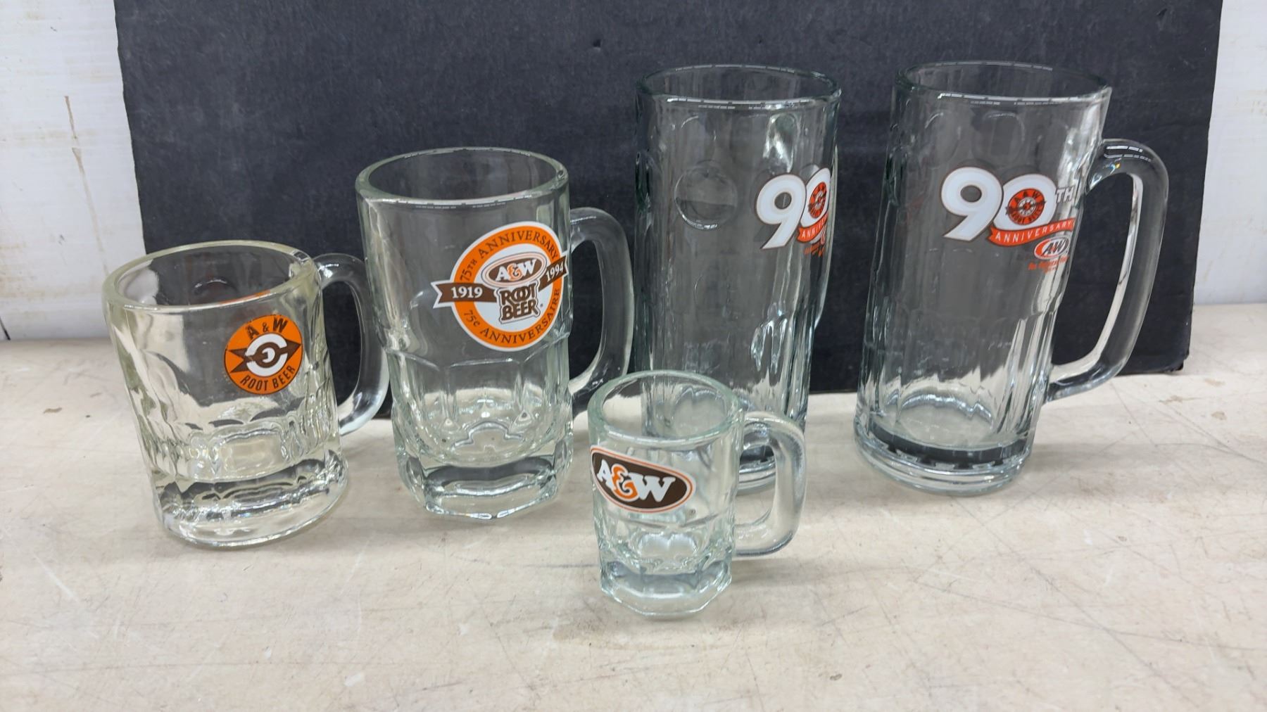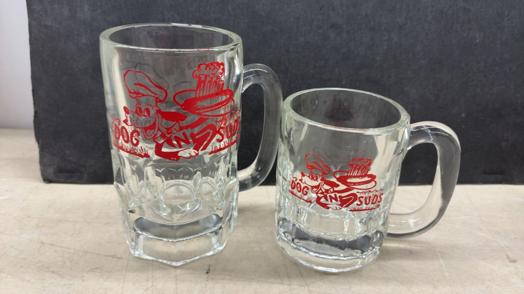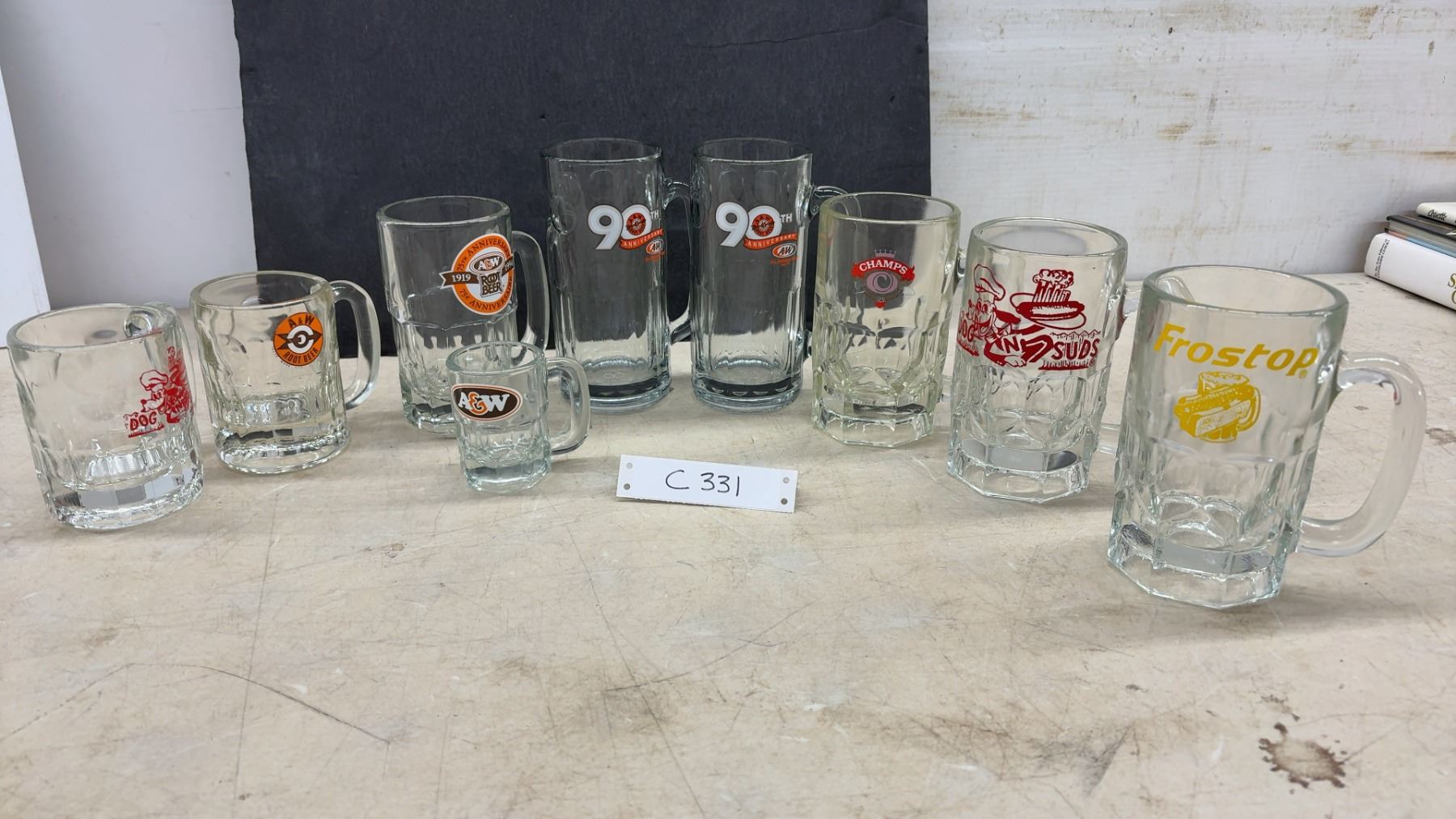 Lot 331 Collection of 10 Vintage Glass Mugs - a&W, Dog N Suds, Frostop, Champs