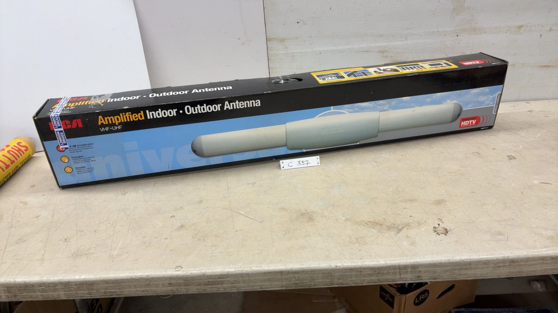 Lot 337 RCA ANT711 Amplified Indoor/Outdoor VHF/UHF HDTV Antenna, 10dB, 46.5 x 9"