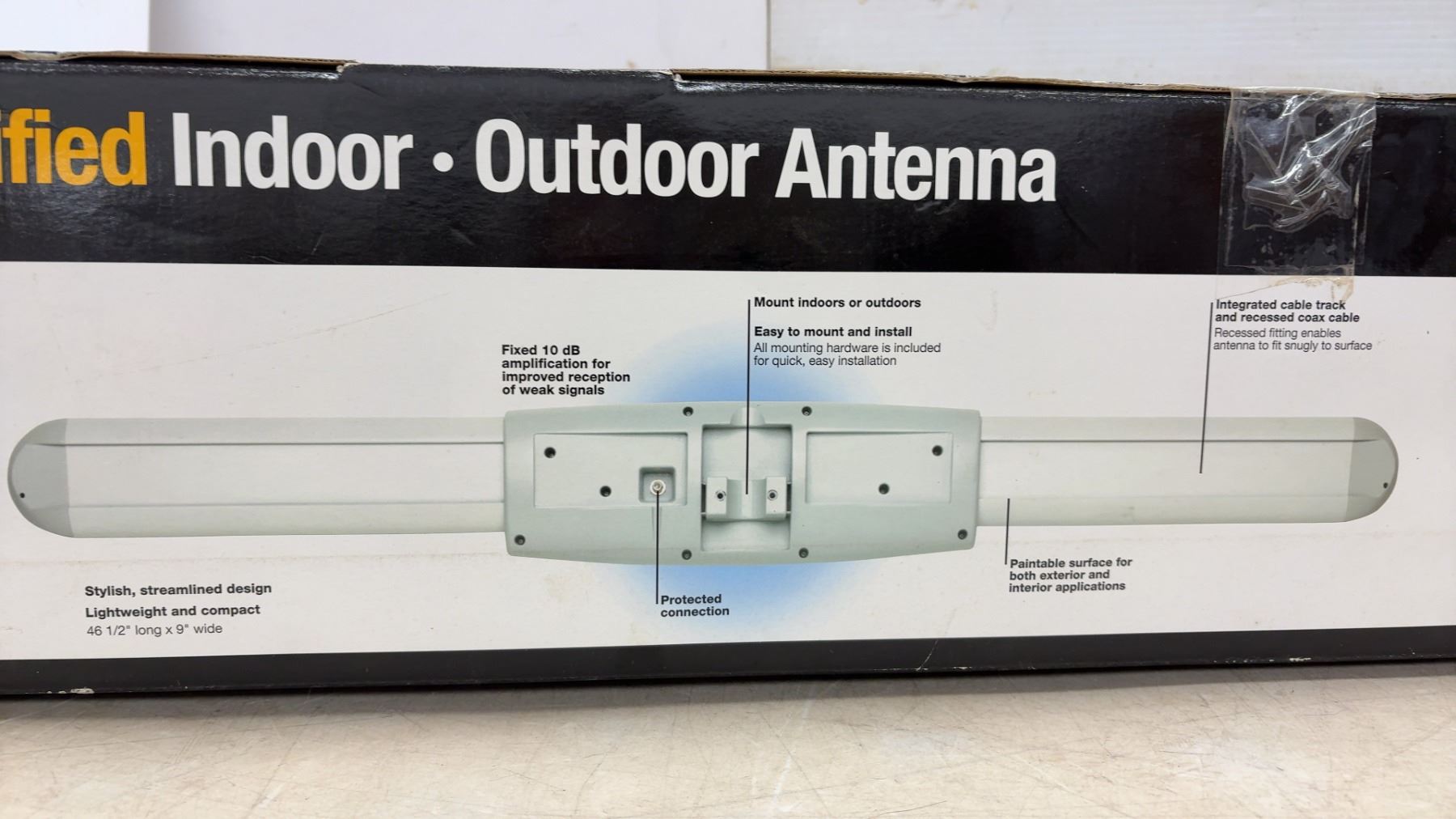 RCA ANT711 Amplified Indoor/Outdoor VHF/UHF HDTV Antenna, 10dB, 46.5 x 9"