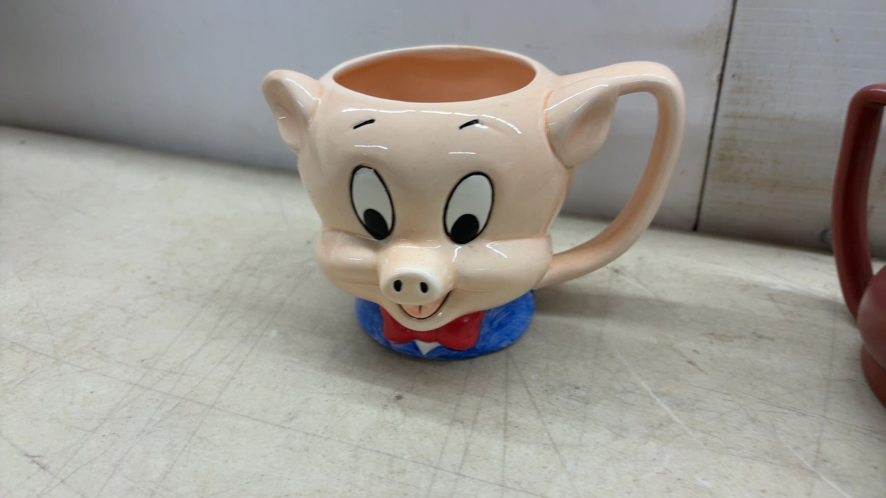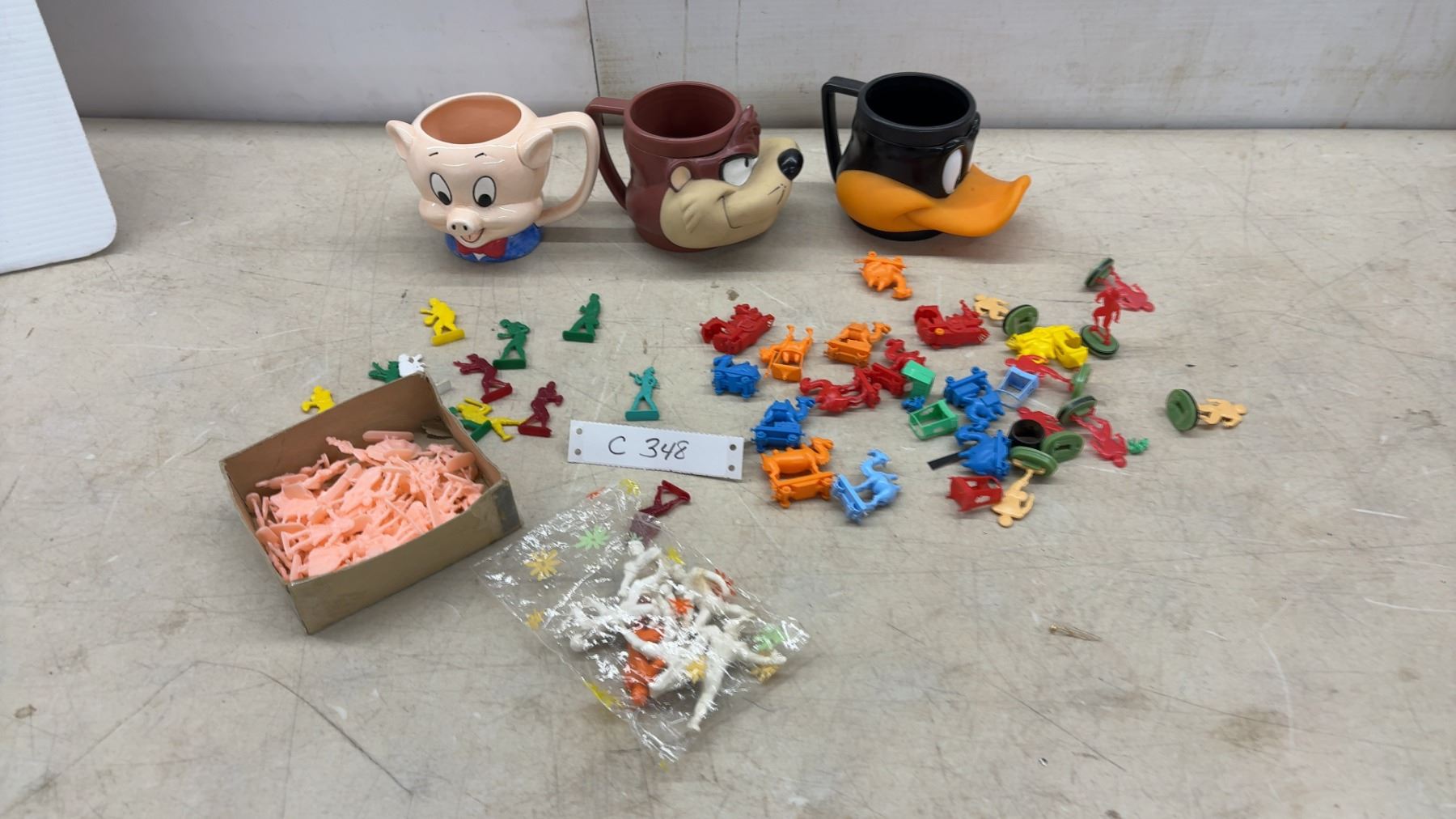 Lot 348 Looney Tunes Character Mugs (Porky Pig, Taz, Daffy Duck) with Vintage Plastic Figurines Lot