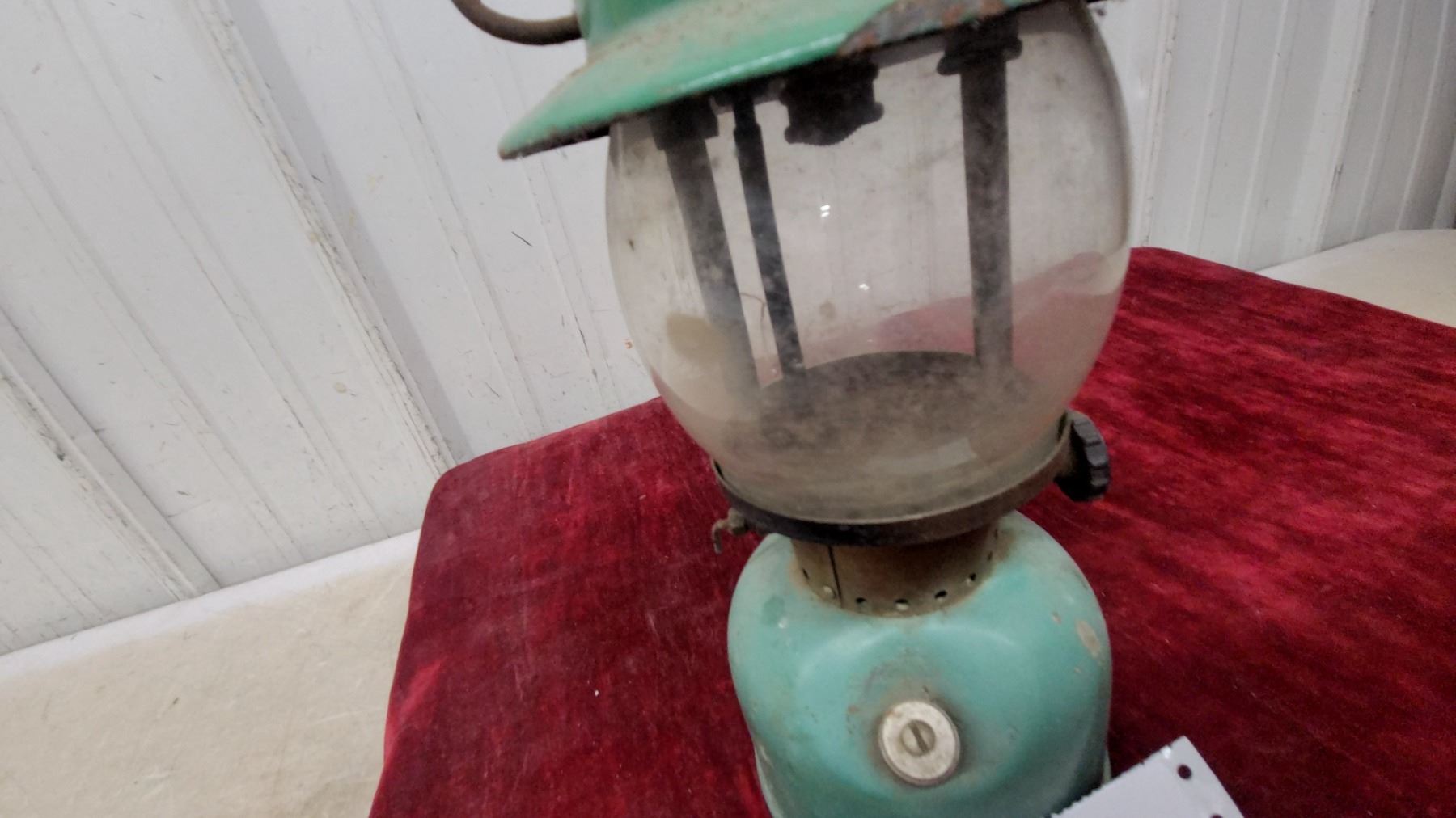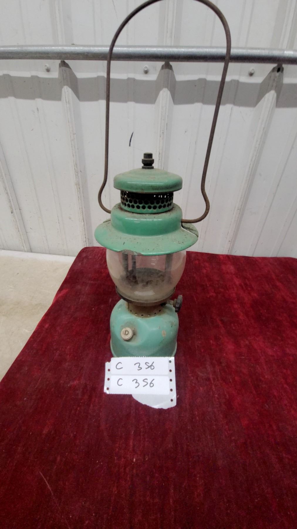 Lot 357 Coleman Single-Mantle Gas Lantern, Green, with Wire Bail Handle Modle 242b