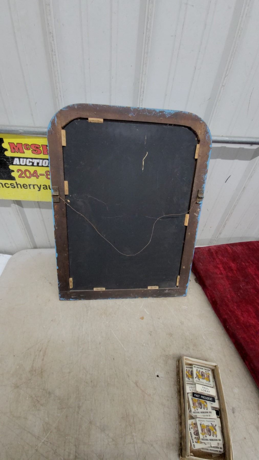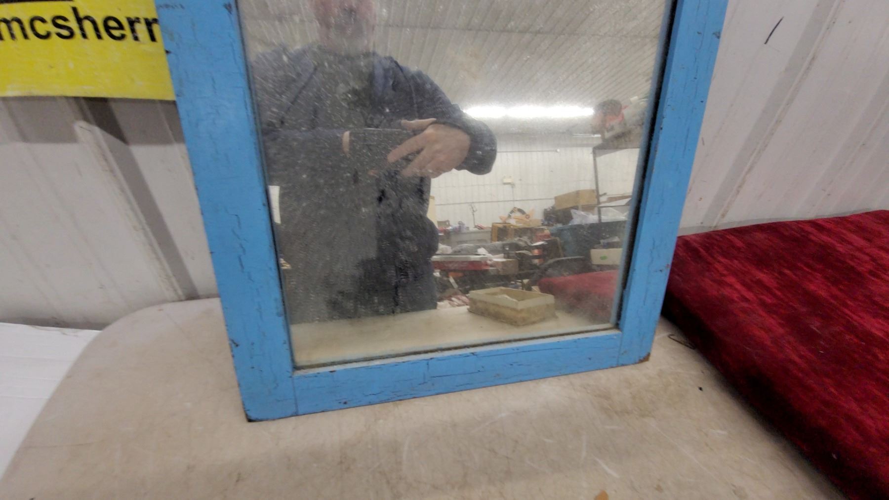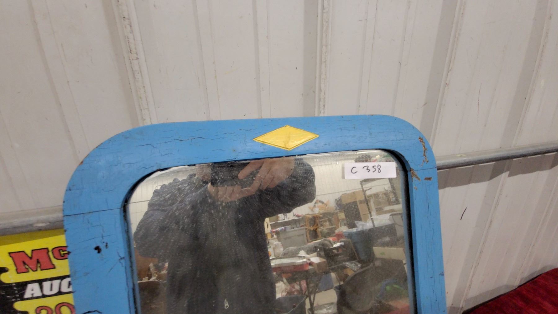 Lot 358 Vintage Blue Painted Wood Framed Wall Mirror with Yellow Diamond Accent 19.6 x 25.6"
