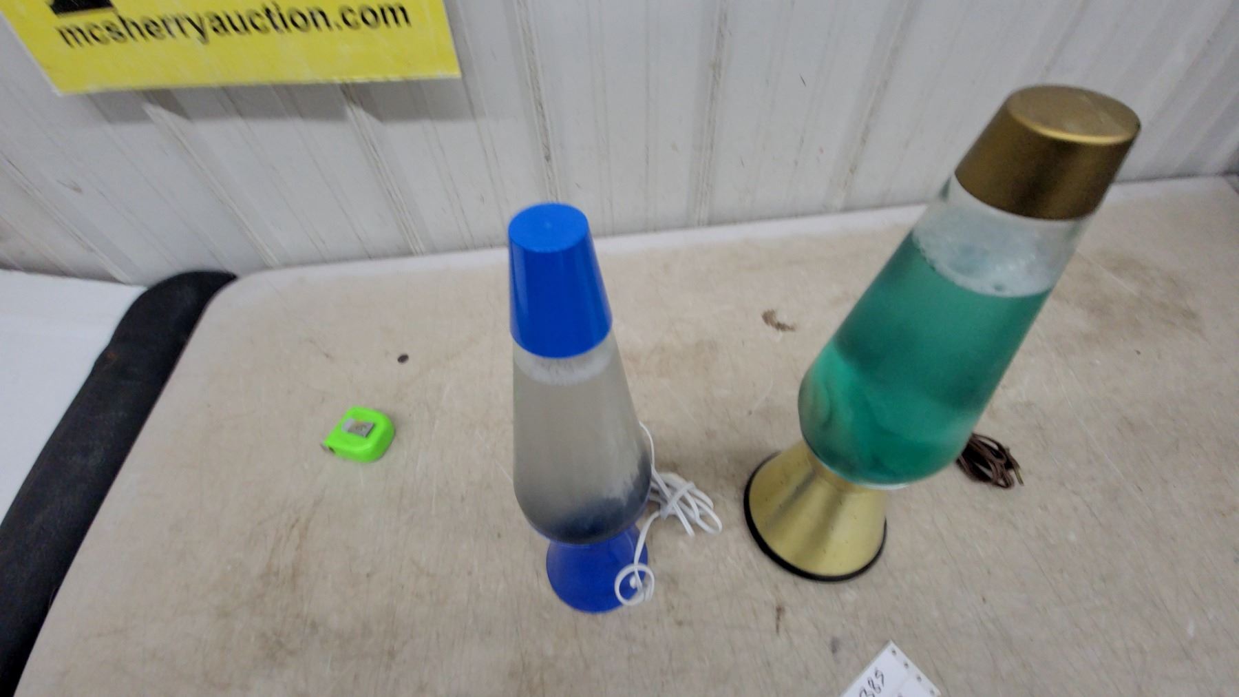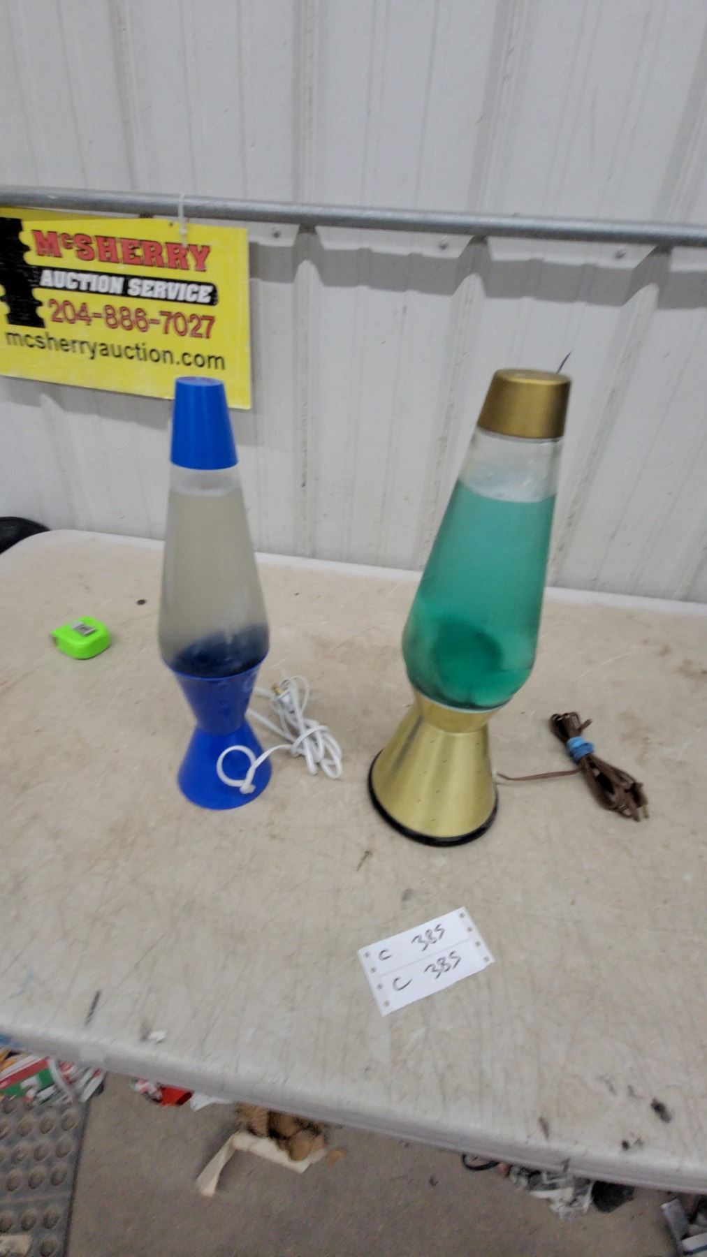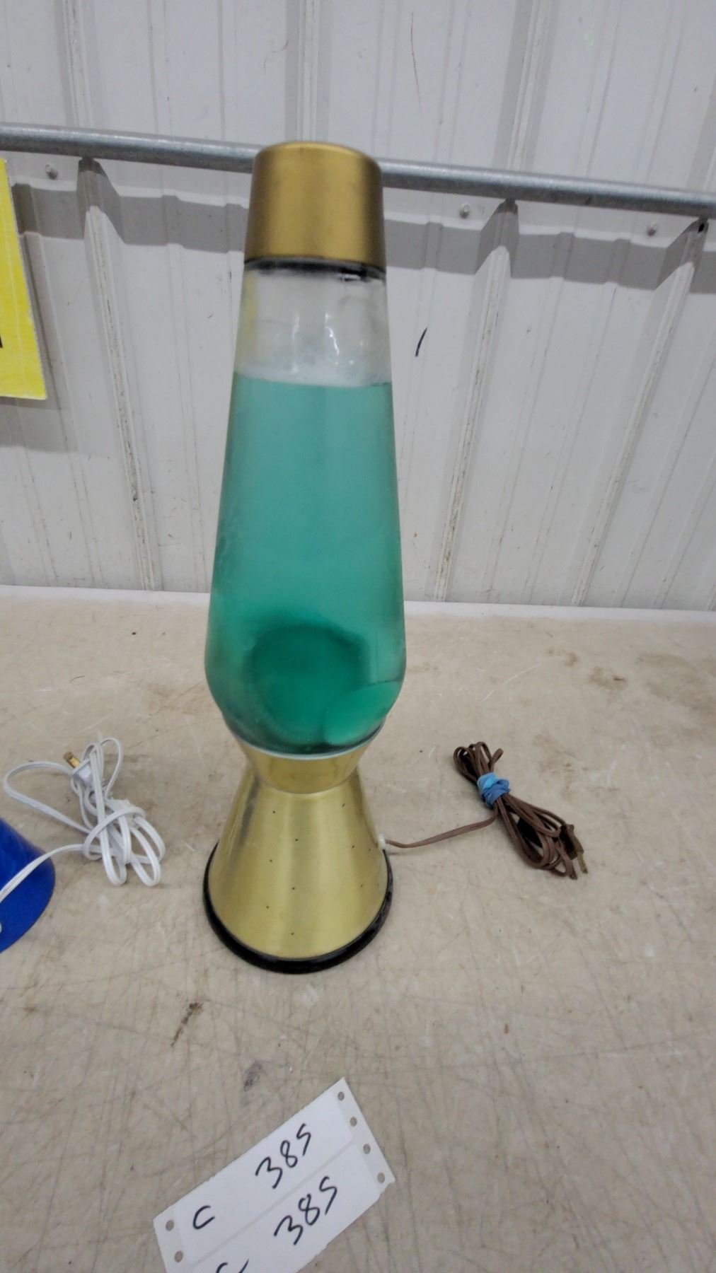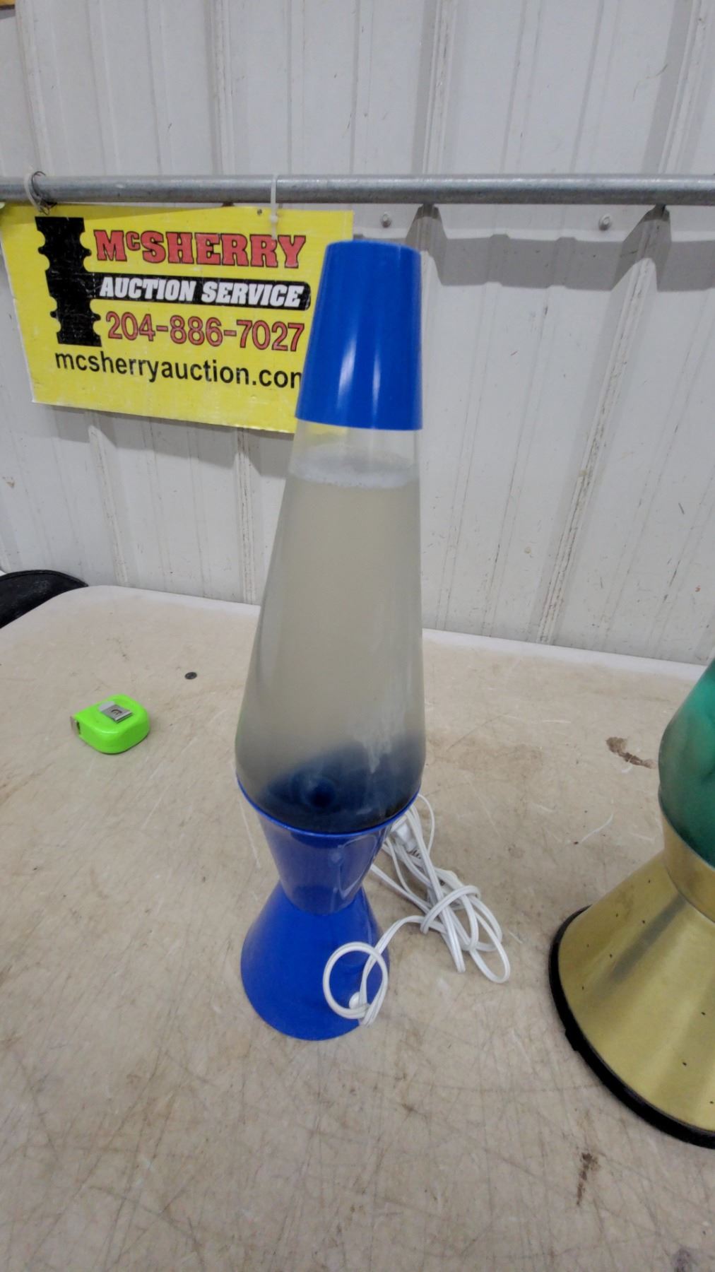 Lot 385 Pair of Lava Lamps - Blue/Grey and Gold/Green/Teal