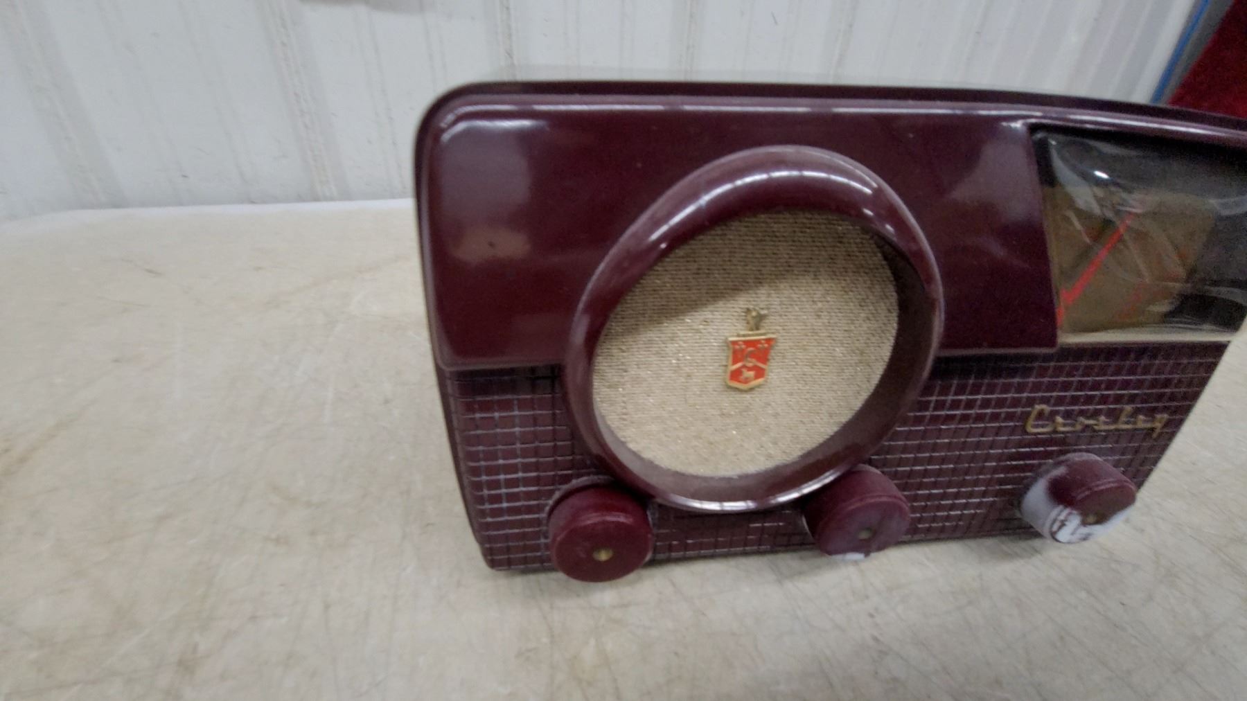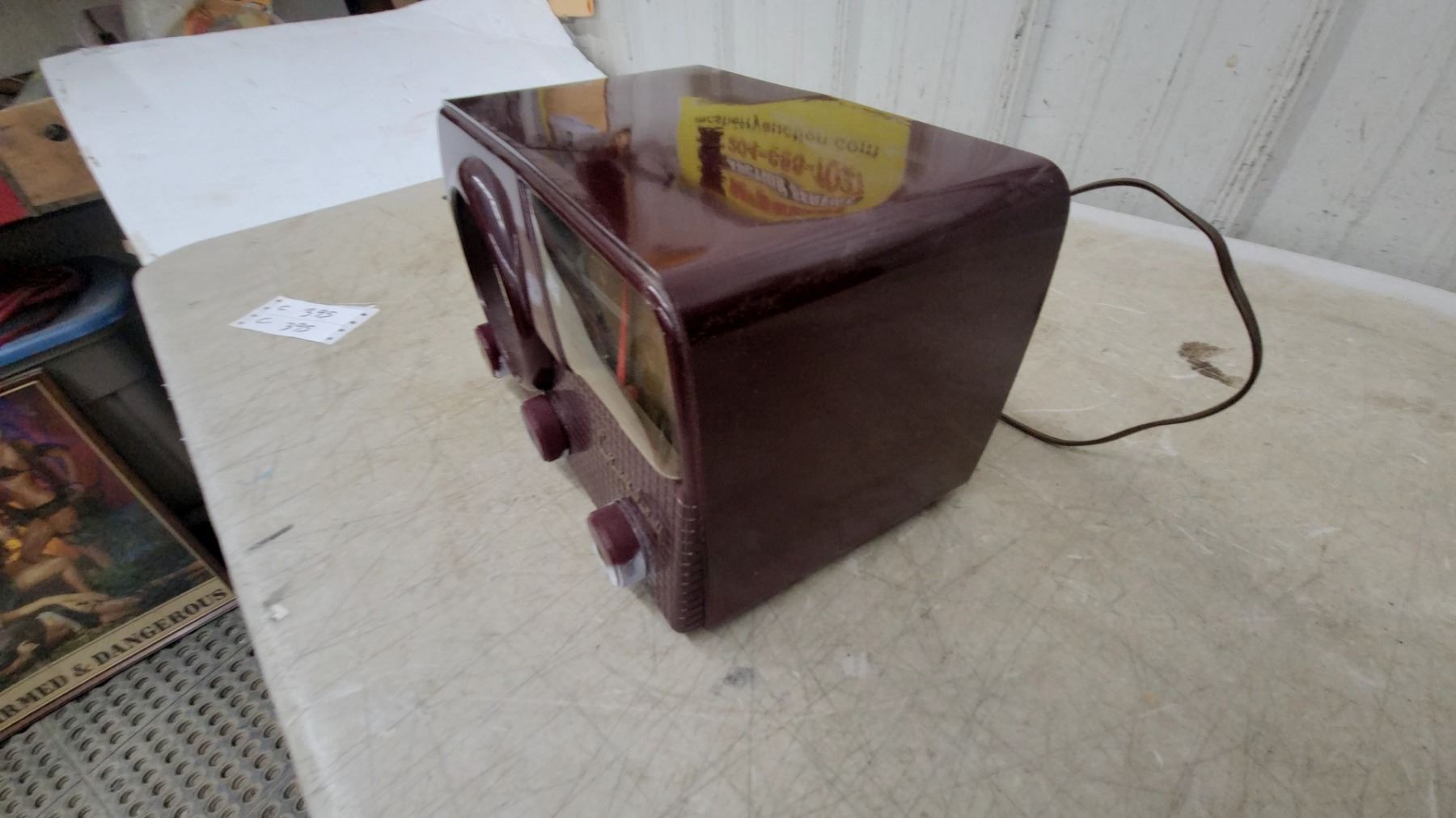 Lot 395 Crosley Vintage Tube Radio, Maroon Bakelite Case, Am Band, Slide Rule Dial