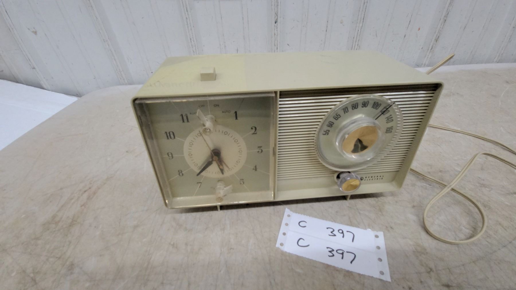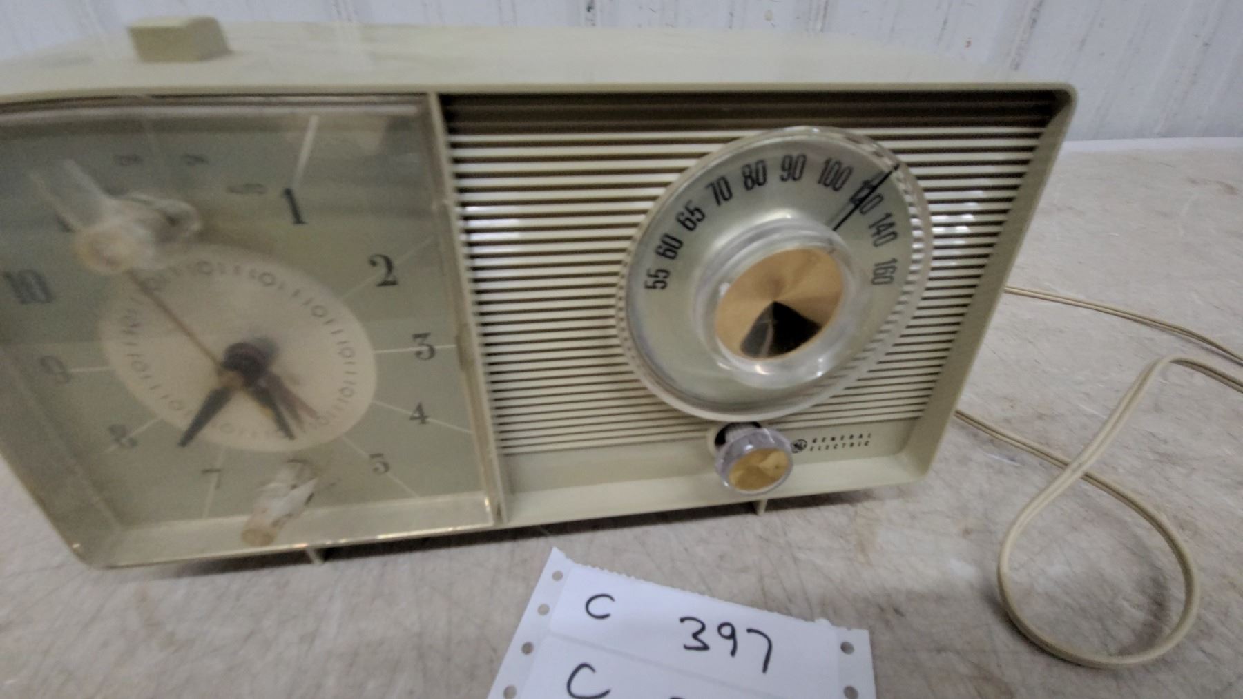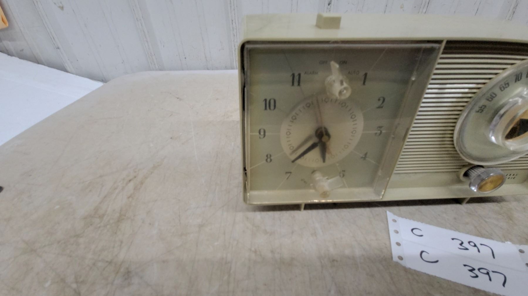Lot 397 General Electric Vintage Am Clock Radio with Analog Tuning Dial, Cream/Ivory Plastic Case