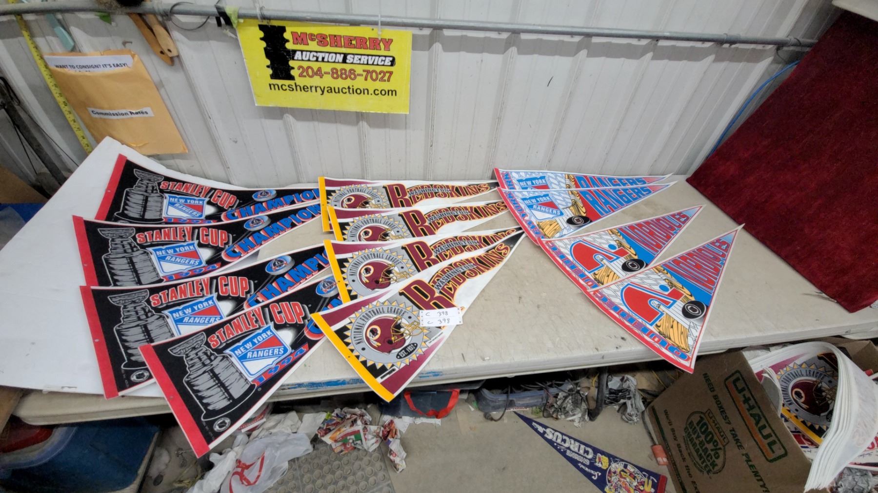 Lot 398 Sports Pennants Lot: Ny Rangers 1994 Stanley Cup, Washington Redskins, Quebec Nordiques, Mn Twins