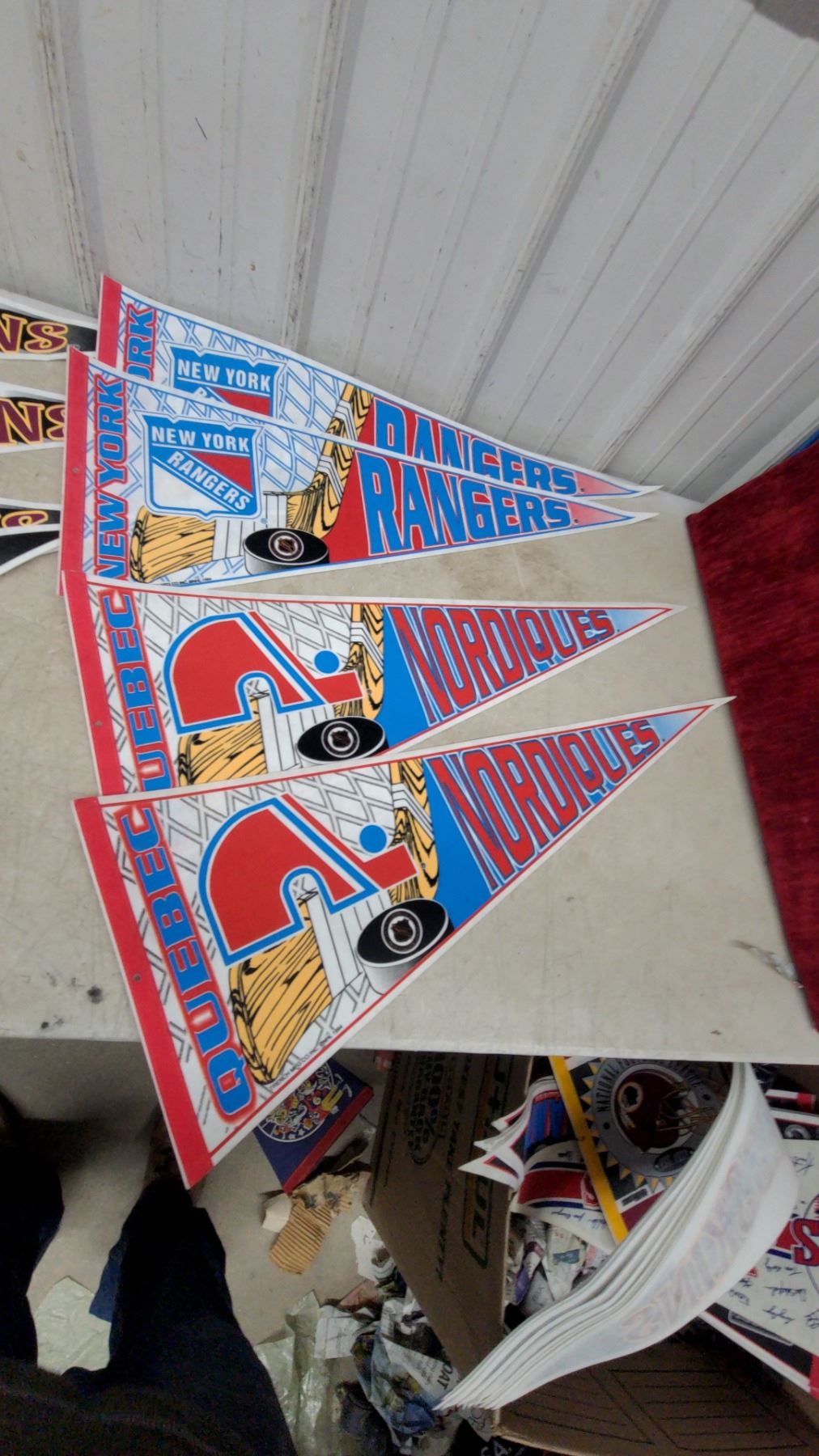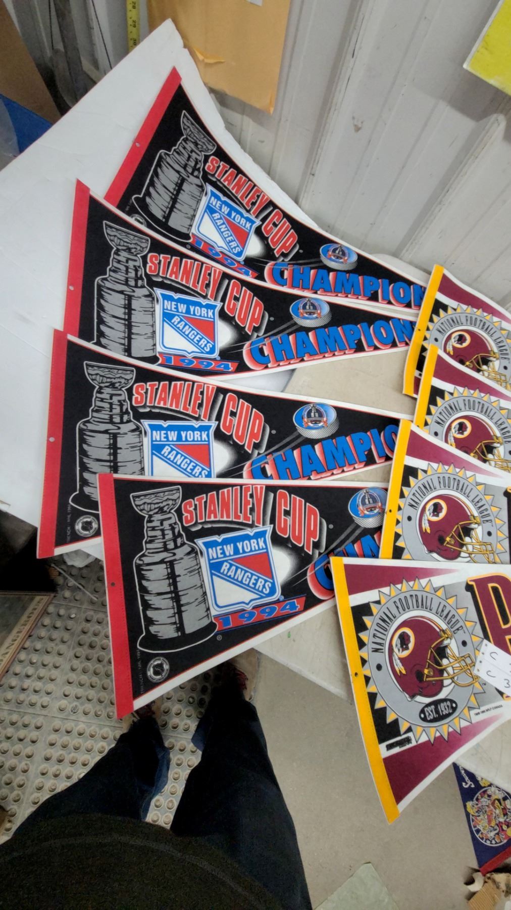 Sports Pennants Lot: Ny Rangers 1994 Stanley Cup, Washington Redskins, Quebec Nordiques, Mn Twins